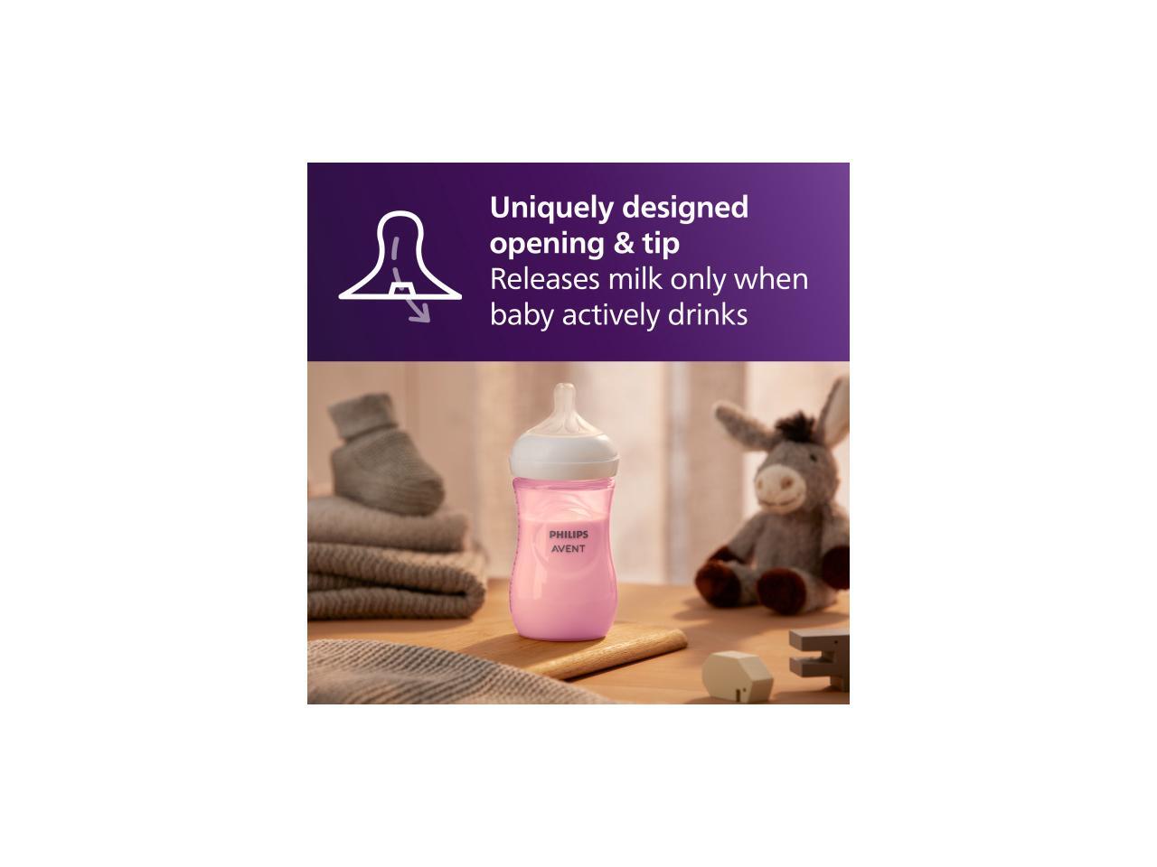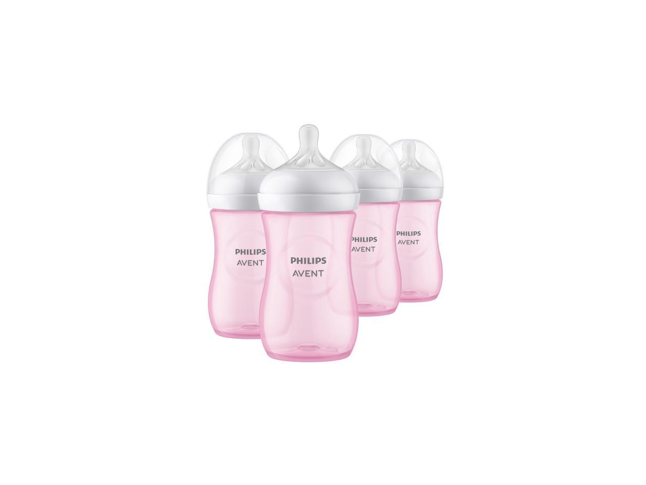 Philips Avent Natural Baby Bottles with Natural Response Nipples (Medium Flow, Flow 3), 9oz, Pink, 4-pack, SCY903/14
