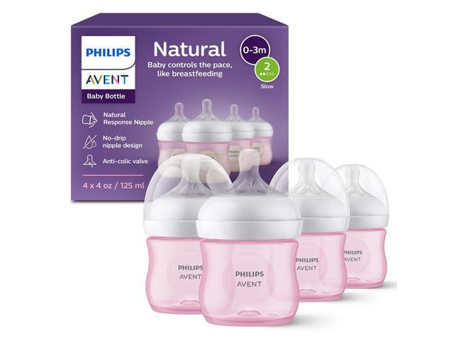 Philips Avent Natural Baby Bottles with Natural Response Nipples (Slow Flow, Flow 2), 4oz, Pink, 4-pack, SCY900/14