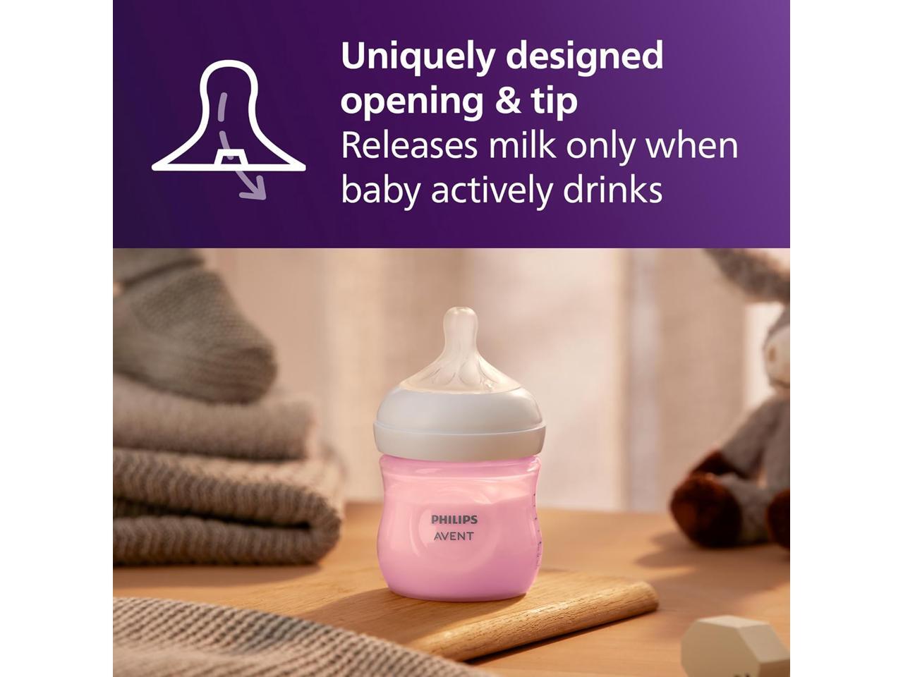 - Philips Avent Natural bottle supporting your baby's natural drinking rhythm: baby controls the pace of the milk flow, just like breastfeeding
