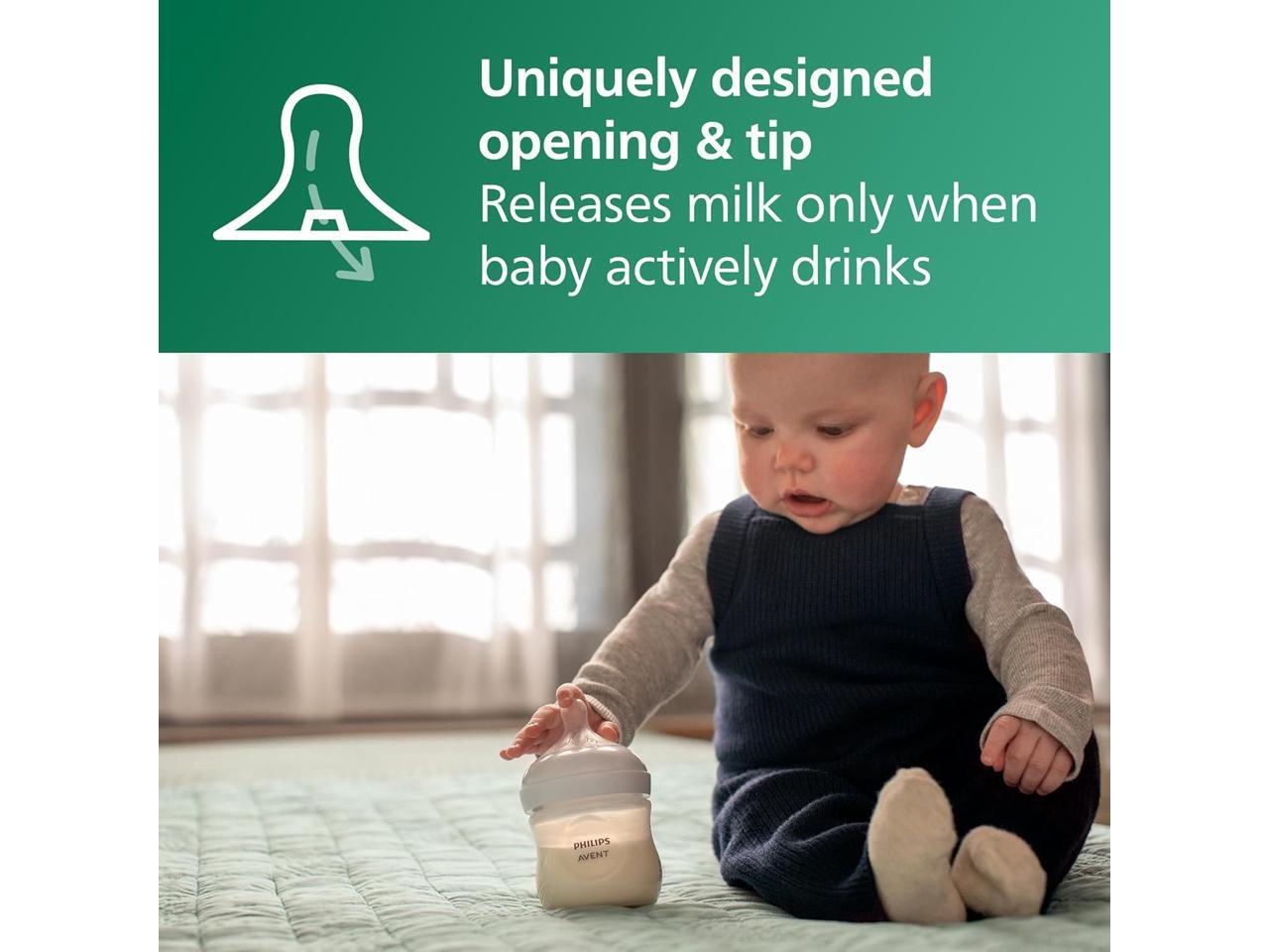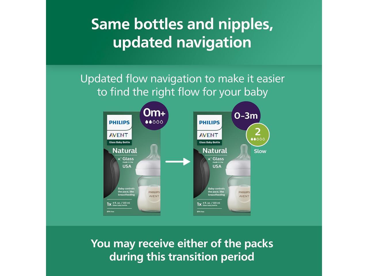 - Philips Avent Glass Natural bottle with the Natural Response nipple lets baby control the pace of the milk, like they do when breastfeeding.