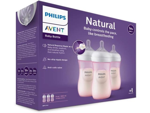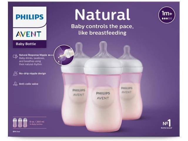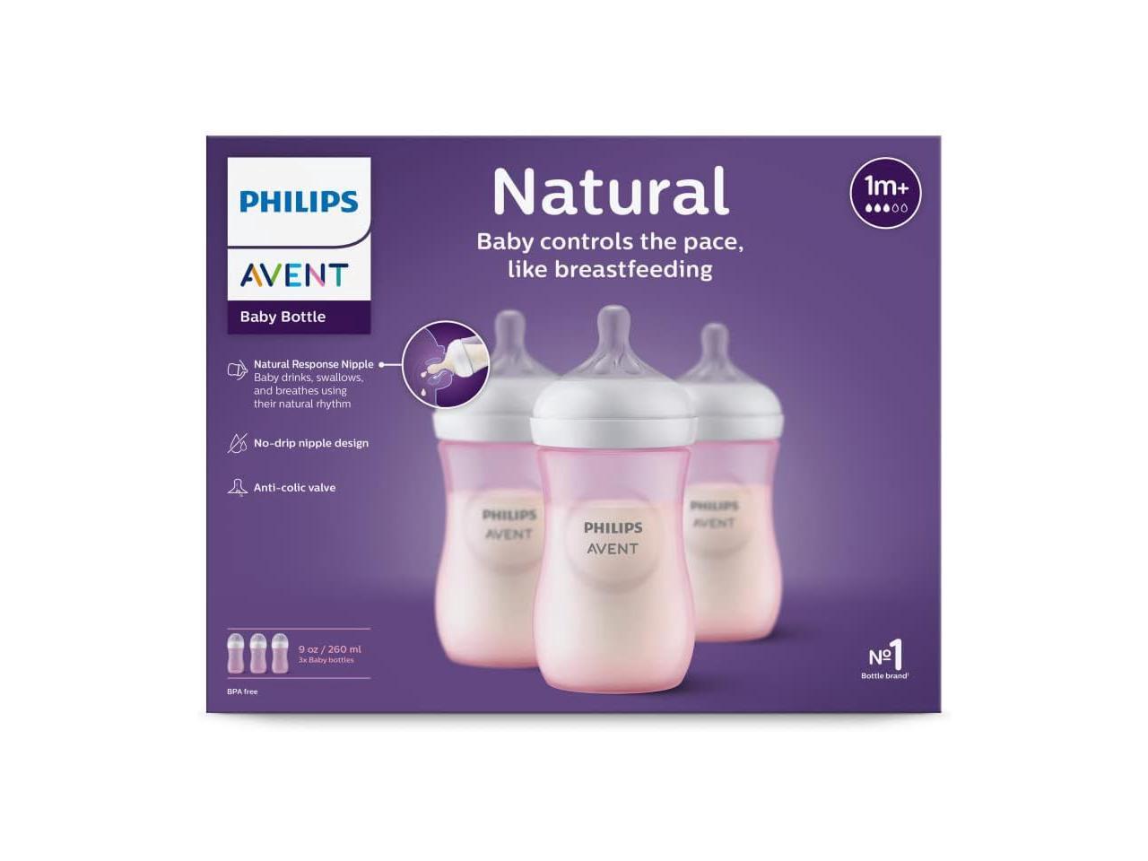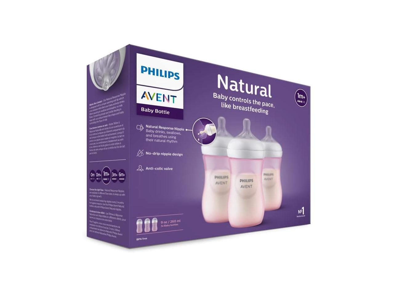 - What's in the box: 3 Pink, 9oz, Natural bottles with Flow 3 Natural Response nipples