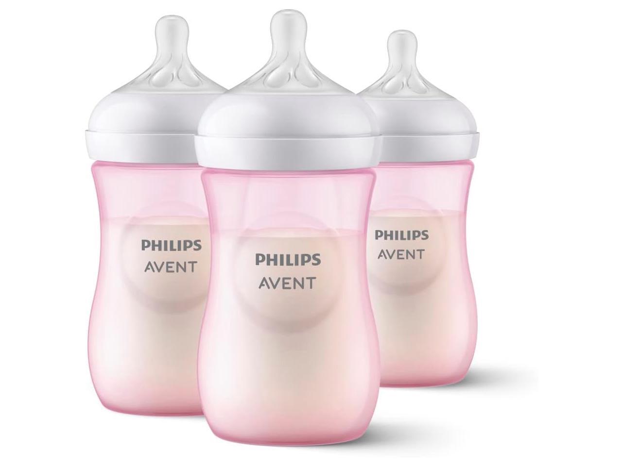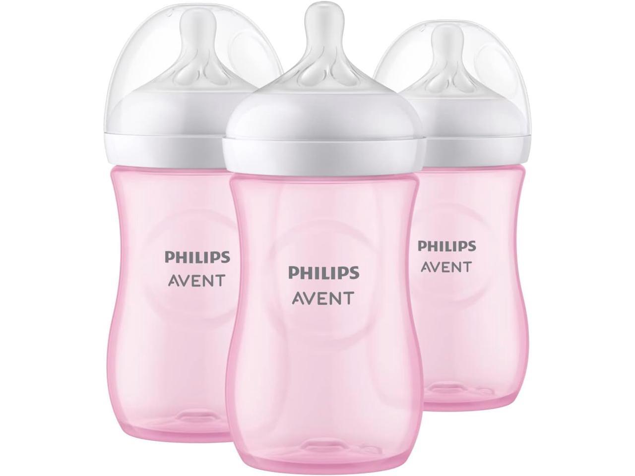 Philips Avent Natural Baby Bottle With Natural Response Nipple, Pink, 9oz, 3pk, SCY903/13