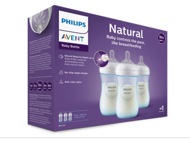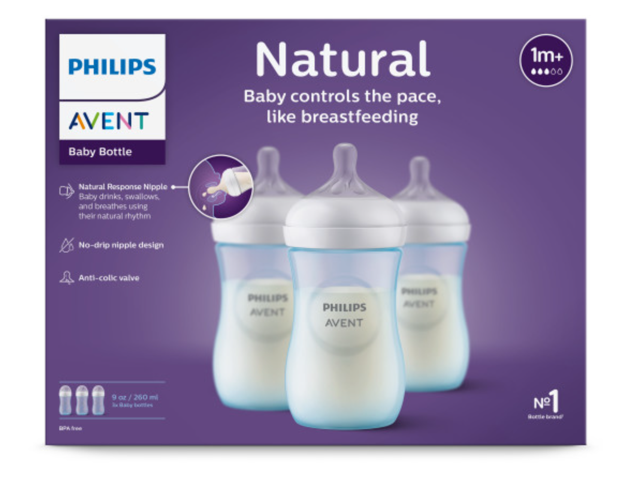 - What's in the box: 3 Blue, 9o,z Natural bottles with Flow 3 Natural Response nipples