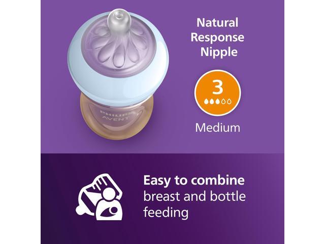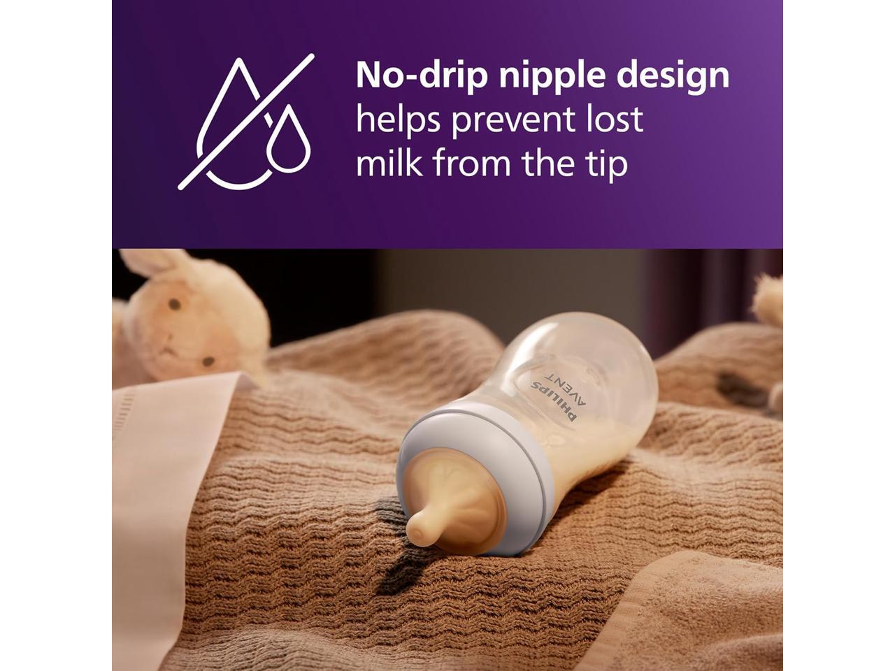 - No-drip nipple design helps prevent lost milk from the tip, giving you peace of mind at home and on the go; the bottles come with medium flow nipples (Flow 3)