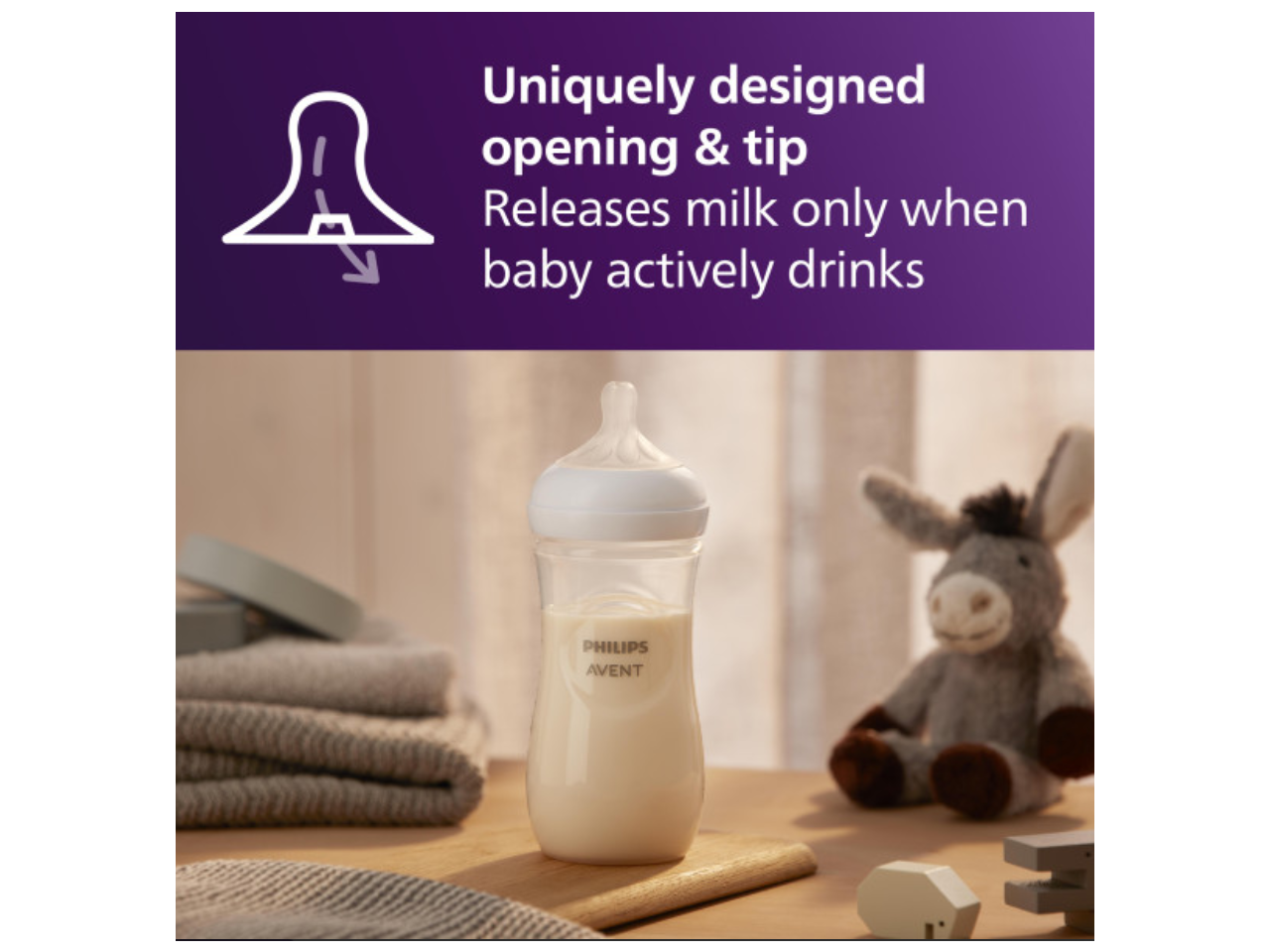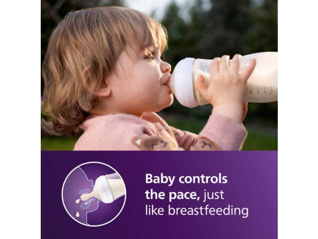 - Philips Avent Natural bottle supporting your baby's natural drinking rhythm: baby controls the pace of the milk flow, just like breastfeeding