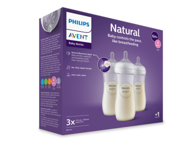 Philips Avent Natural Baby Bottles with Natural Response Nipples (Fast Flow, Flow 4), 11oz, 3-pack, SCY906/93