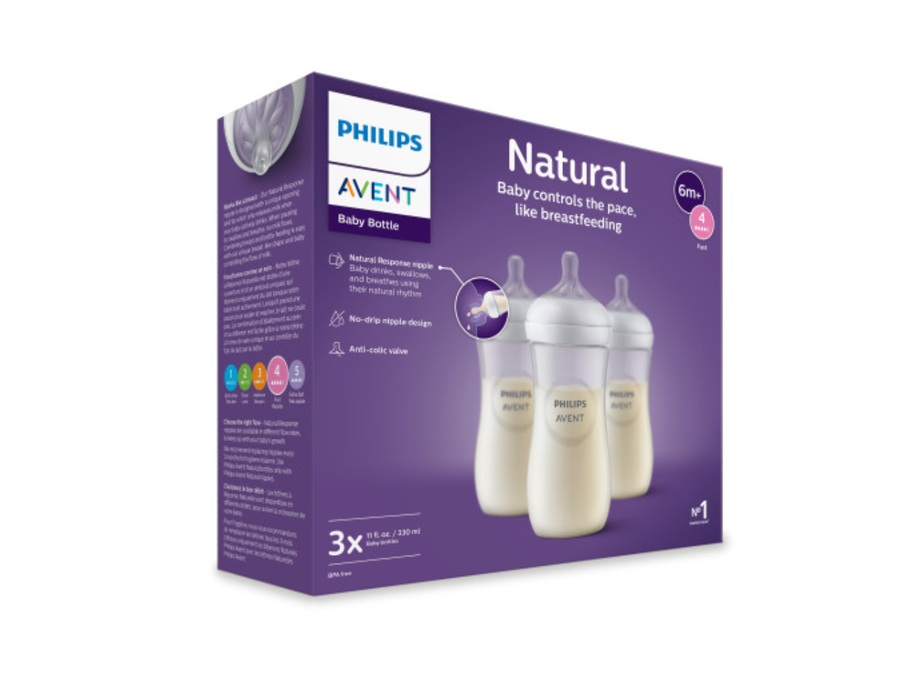 - What's in the Box: 3x 11oz Natural bottles with fast flow nipples (Flow 4)