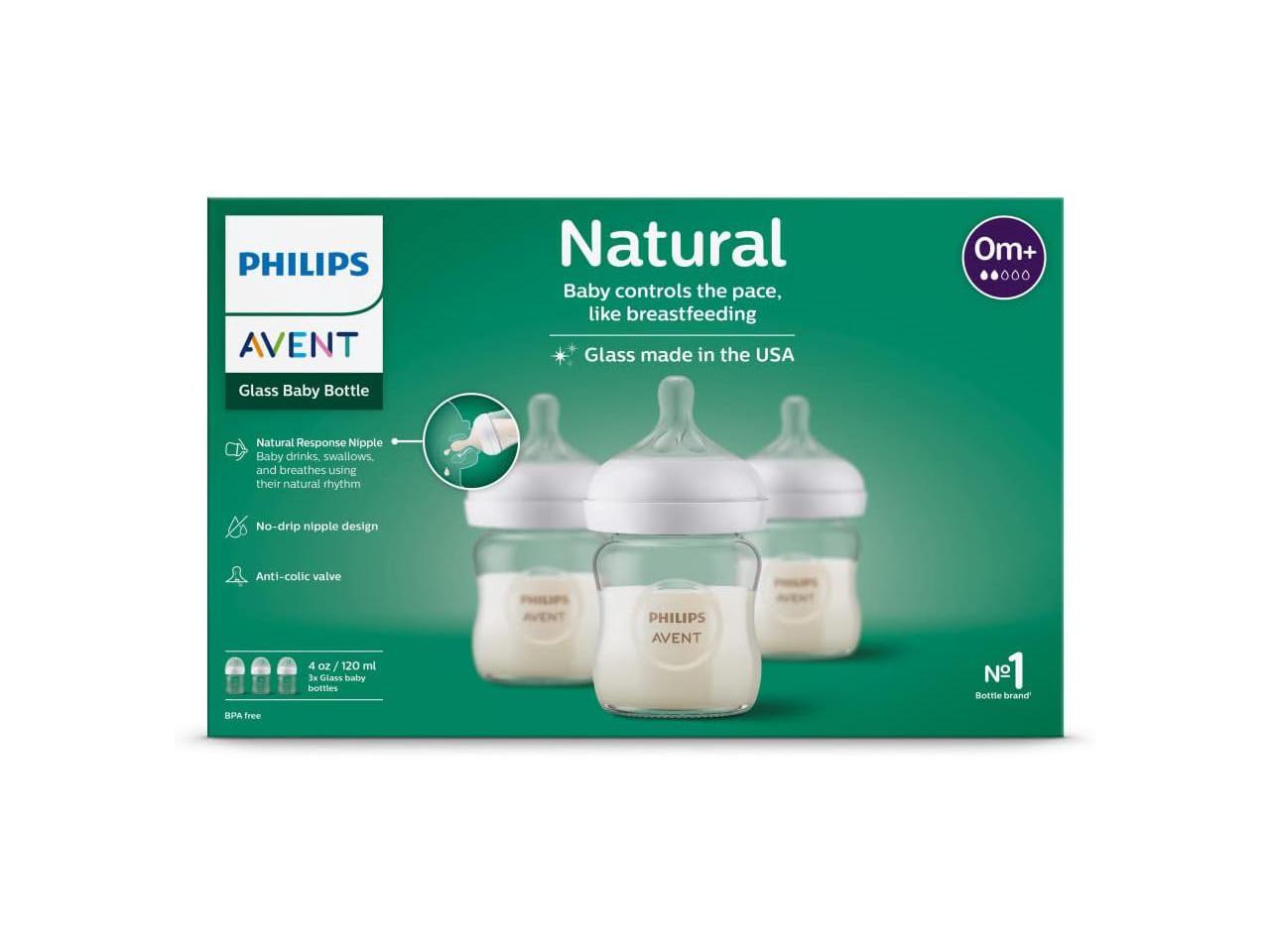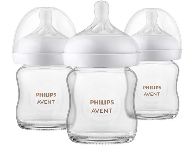 Philips Avent Natural Glass Baby Bottles with Natural Response Nipples (Slow Flow, Flow 2), 4oz, 3-pack, SCY910/03