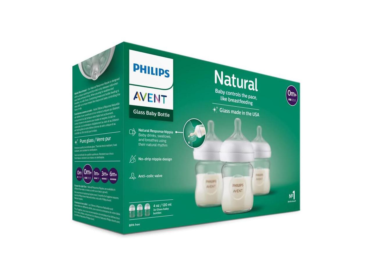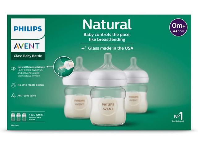 - Philips Avent Natural glass bottles supporting your baby's natural drinking rhythm: baby controls the pace of the milk flow, just like breastfeeding