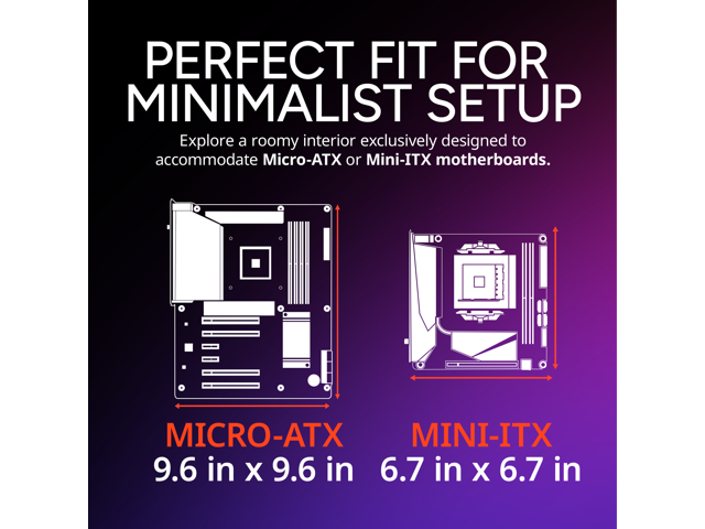 Perfect Fit for Minimalist Setup: Explore a roomy interior exclusively designed to accommodate Micro-ATX or Mini-ITX motherboards.