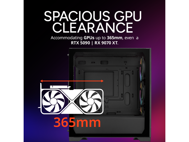 GPU Clearance: Accommodating GPUs up to 365mm, even a RTX 5090 | RX 9070 XT.