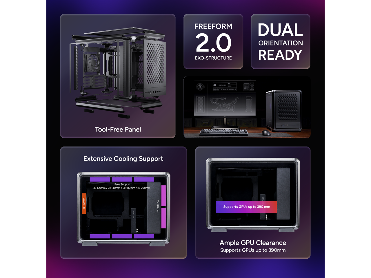 - The aluminum open-frame design delivers structural rigidity, clean airflow, and a bold, functional aesthetic.