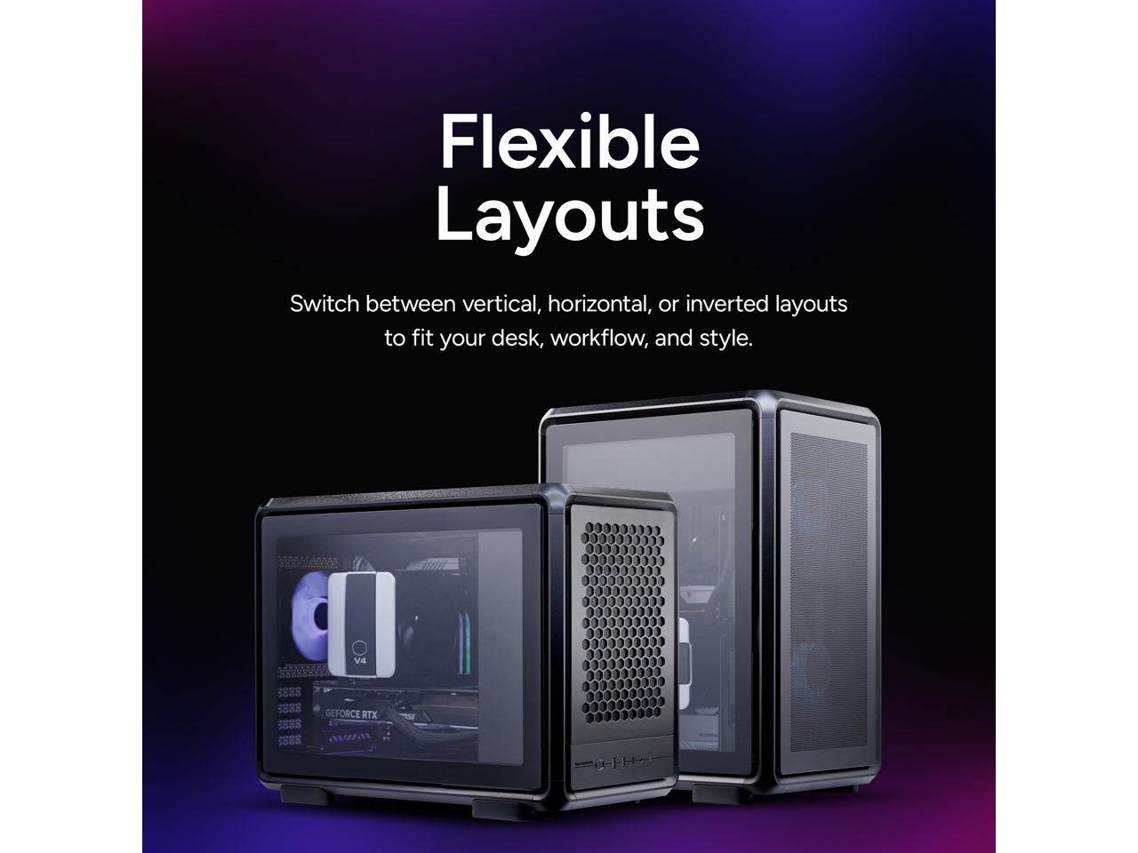 - Easily remove side panels without tools for quick access and modifications during build or upgrades.