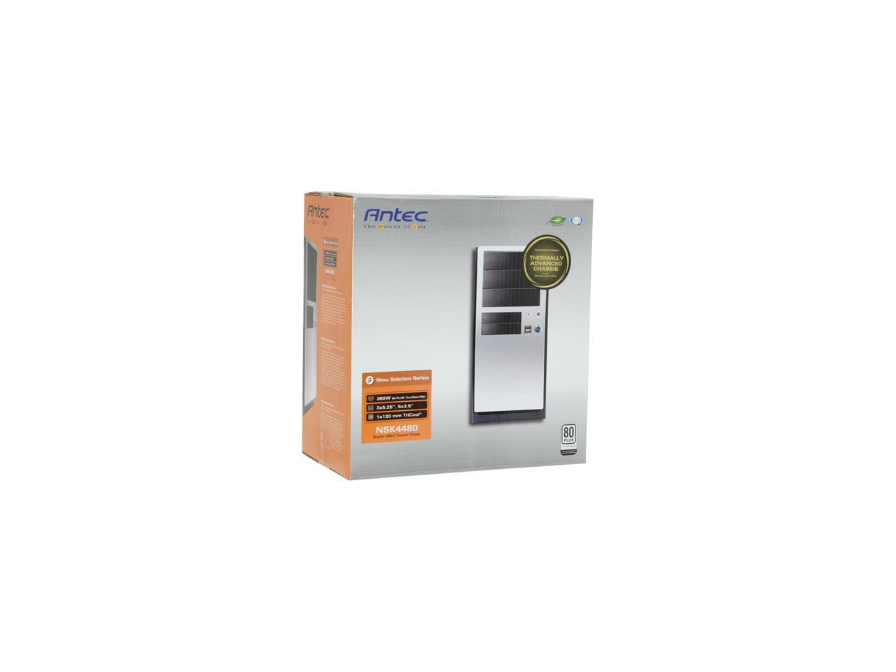 The newest member of Antec’s award-winning Solution Series, the silver NSK4480 continues the tradition of combining quality and cost effective cases and power supplies. In addition, it is more environmentally friendly thanks to the 380 Watt ATX 12V v2.2 power supply’s Active PFC and 80 PLUS certification – which means that you’ll be saving electricity as well as money each month.