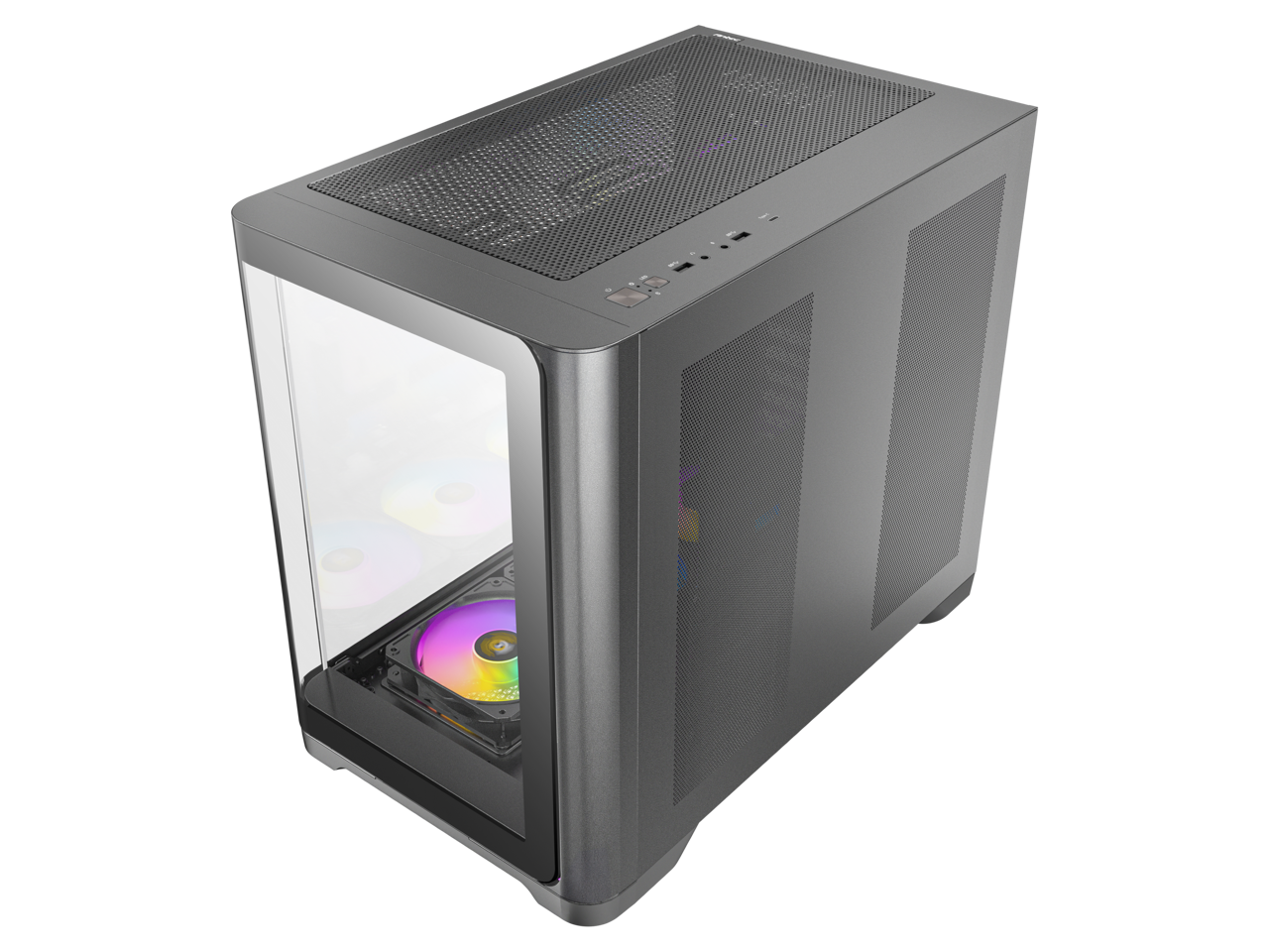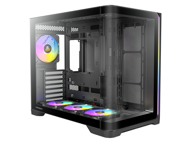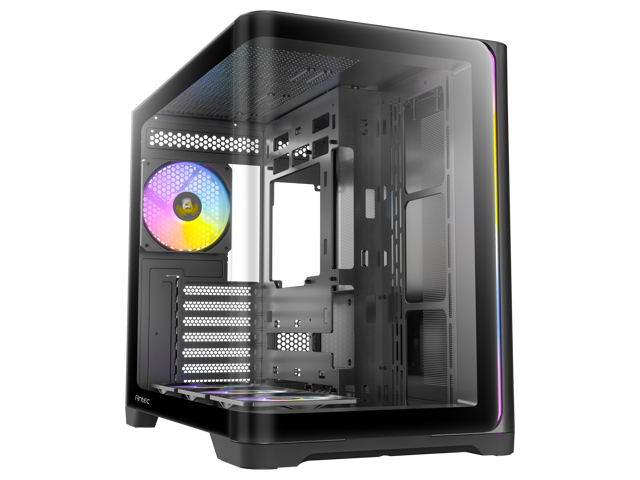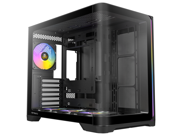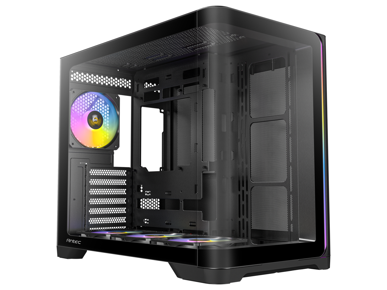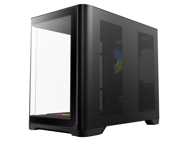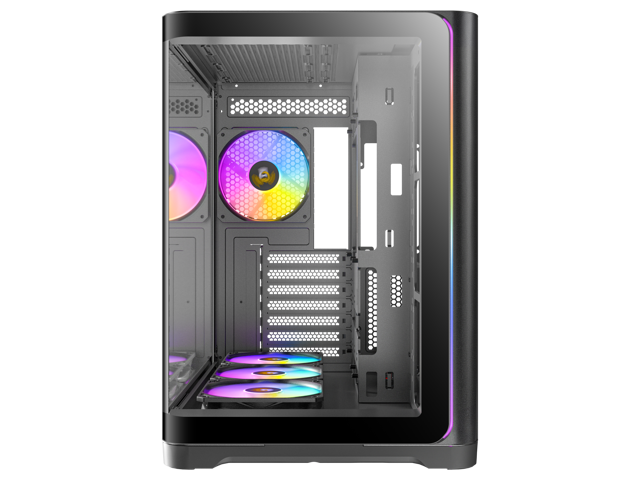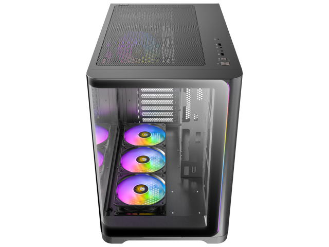 Full-View PC Case with Curved Front & Side Tempered Glass Panel.