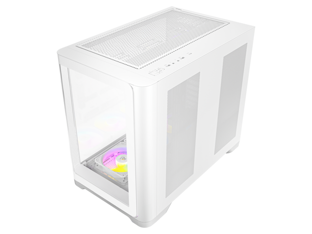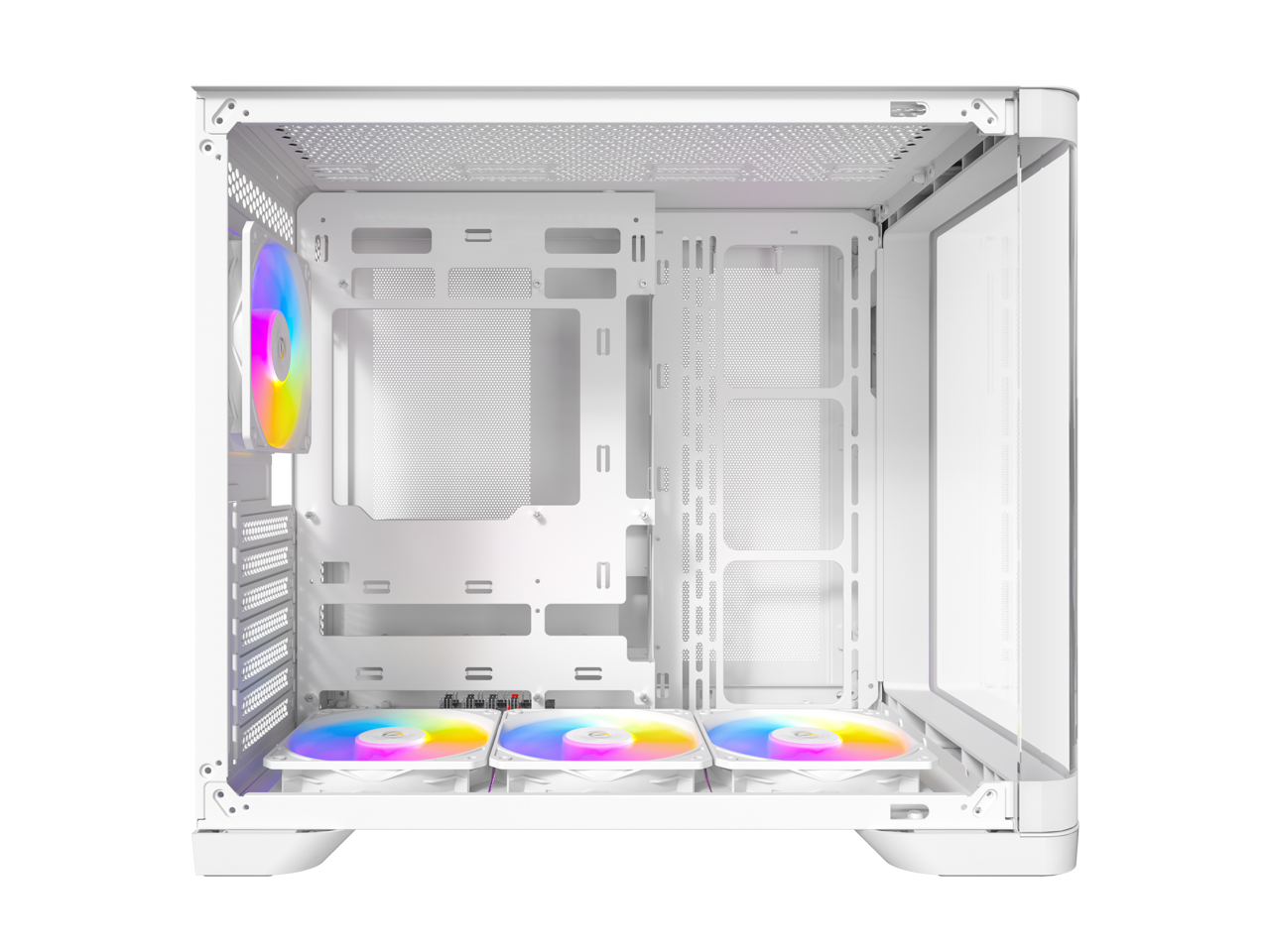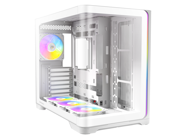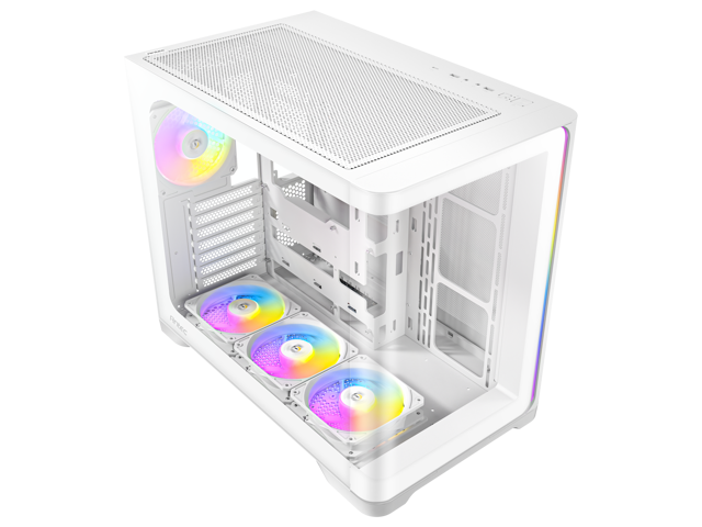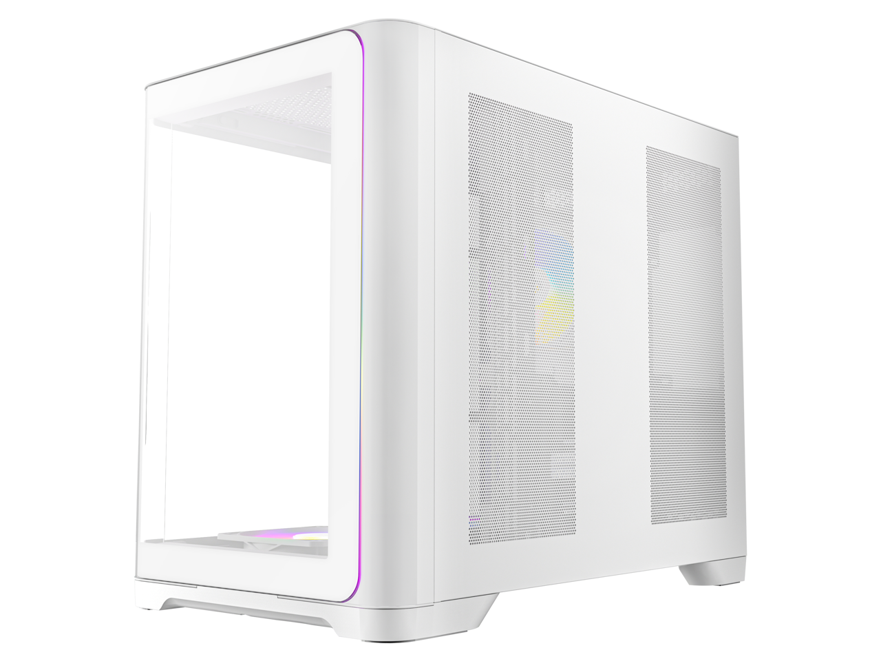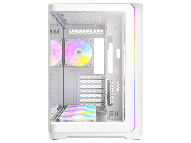 - Full-View PC Case with Curved Front & Side Tempered Glass Panel.