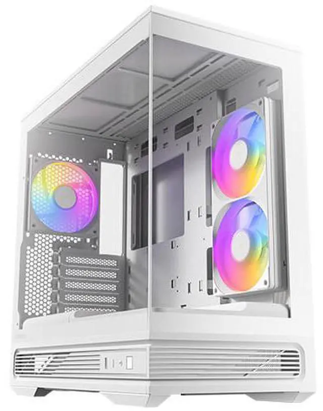- 2. Pre-installed PWM ARGB Fans: 1 x 240mm reverse-blade ARGB PWM single-frame fan on the right side and 1 x 120mm ARGB PWM rear fan.