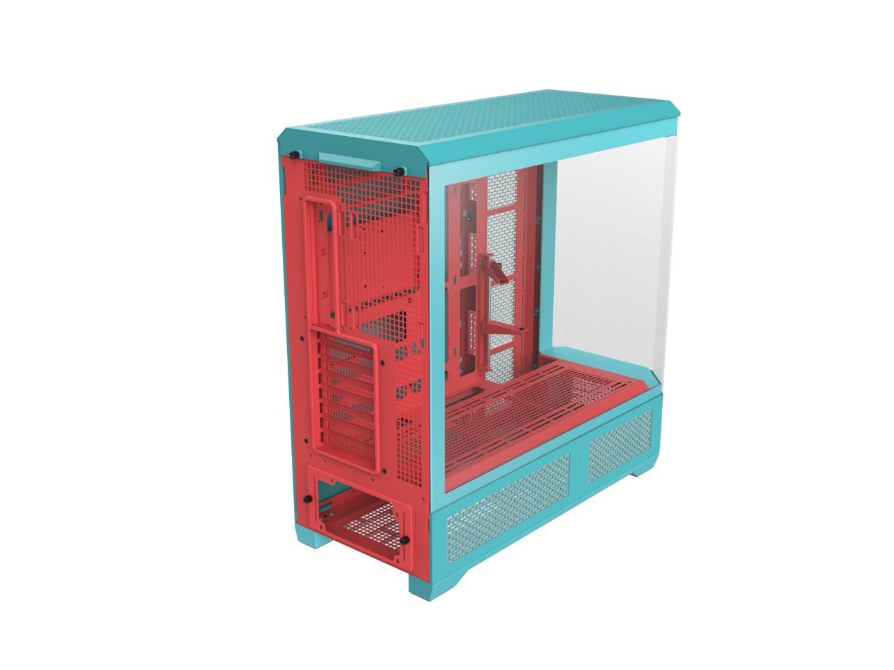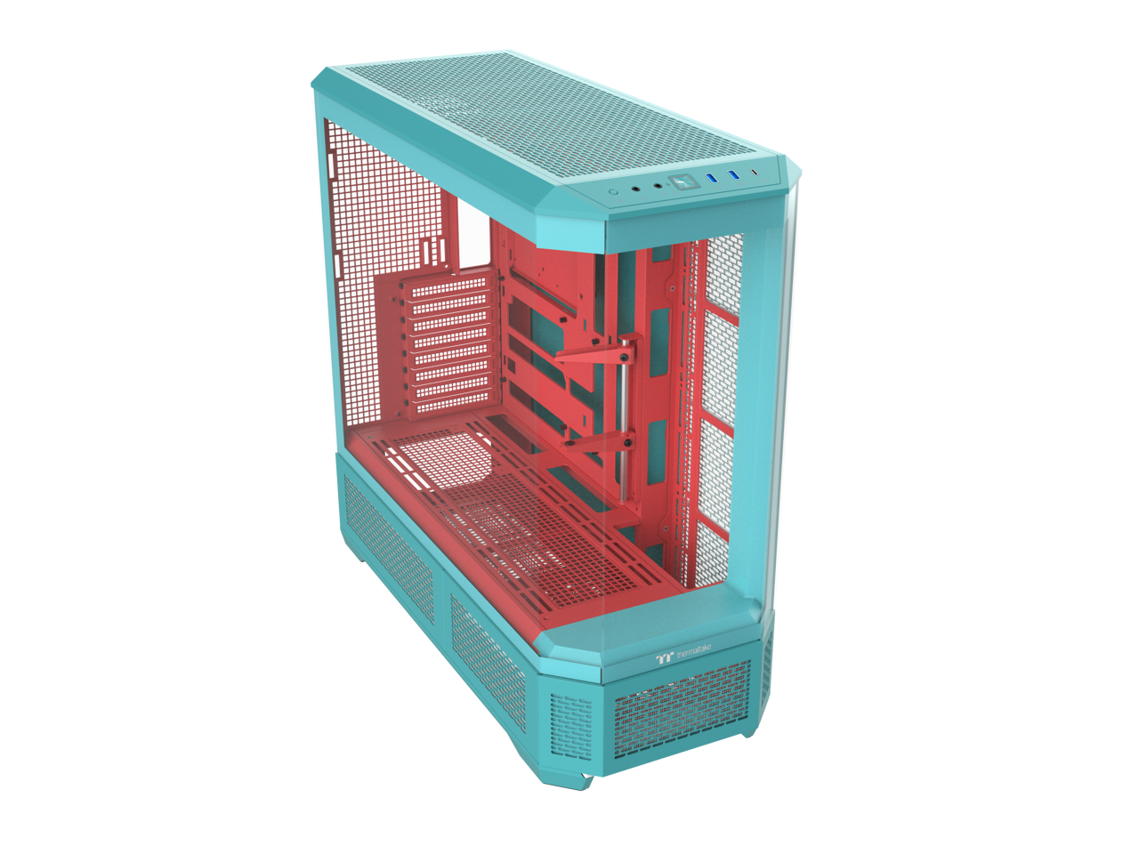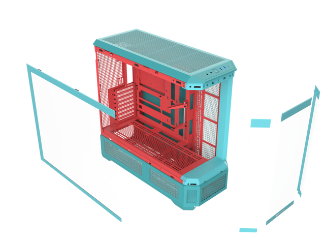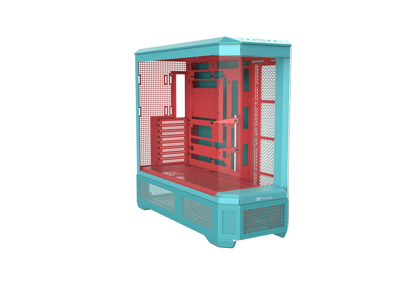 Thermaltake View 600 TG; Full Tower; 420mm Radiator Support; 480mm GPU Clearance; Hidden Connector Support; Rotatable PCIe Slots; 220mm PSU Clearance; Mint Strawberry; CA-11H-00FLWN-00