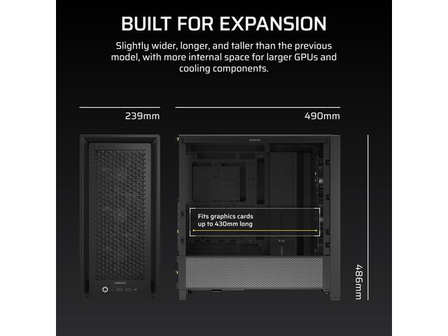 Corsair Frame 4000D Black Steel / Tempered Glass ATX Mid Tower Computer Case with RM1000e Power Supply installed