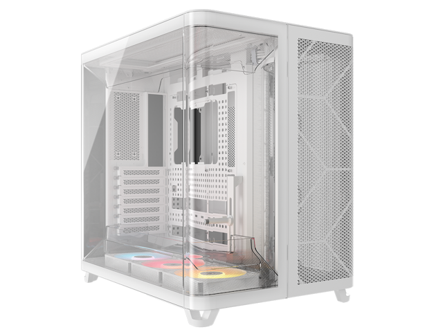 Corsair AIR 5400 RS-R ARGB Triple Chamber Mid-Tower PC Case-White with 3x RS-R 120mm reverse PWM ARGB fans Pre-installed, BTF Back Plug Motherboard Design
