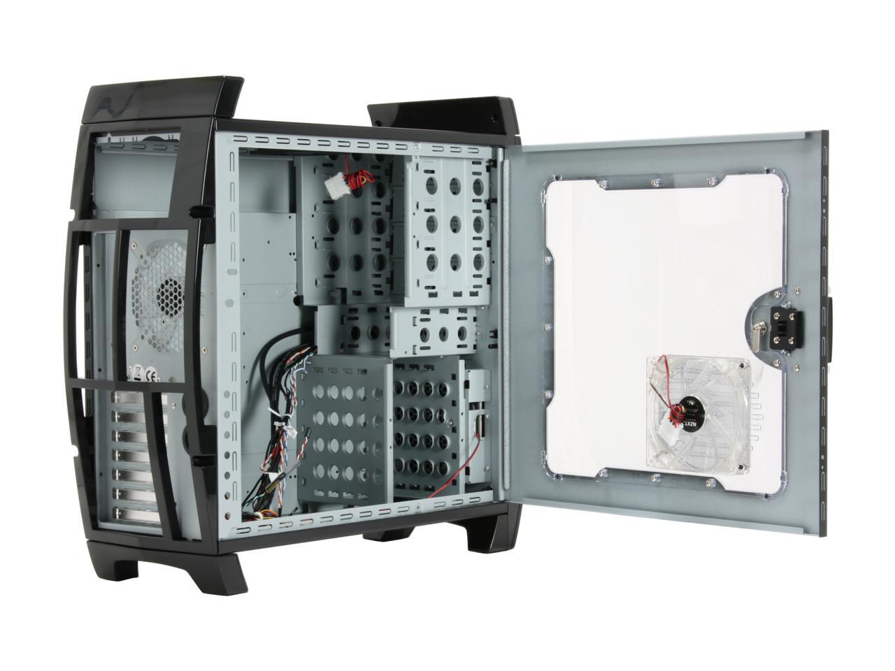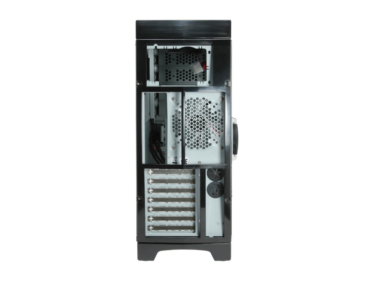 Do you want your next computer to stand out from the crowd? Here's an ATX-compatible mid-sized tower that should do the trick. A large viewport lets you see the inner workings, illuminated by the 120mm LED fans on the side and rear. An empty slot is ready for the power supply that's right for you. Seven I/O slots and numerous drive bays give you room for expansion. It can hold large cards like the Nvidia 8800GTX and further, it's pre-drilled to allow for external water cooling!