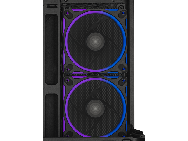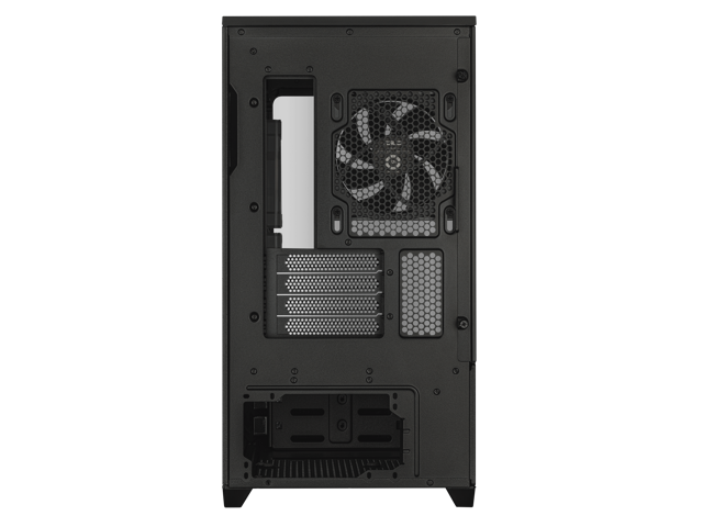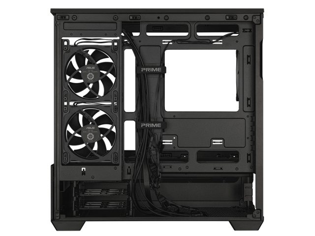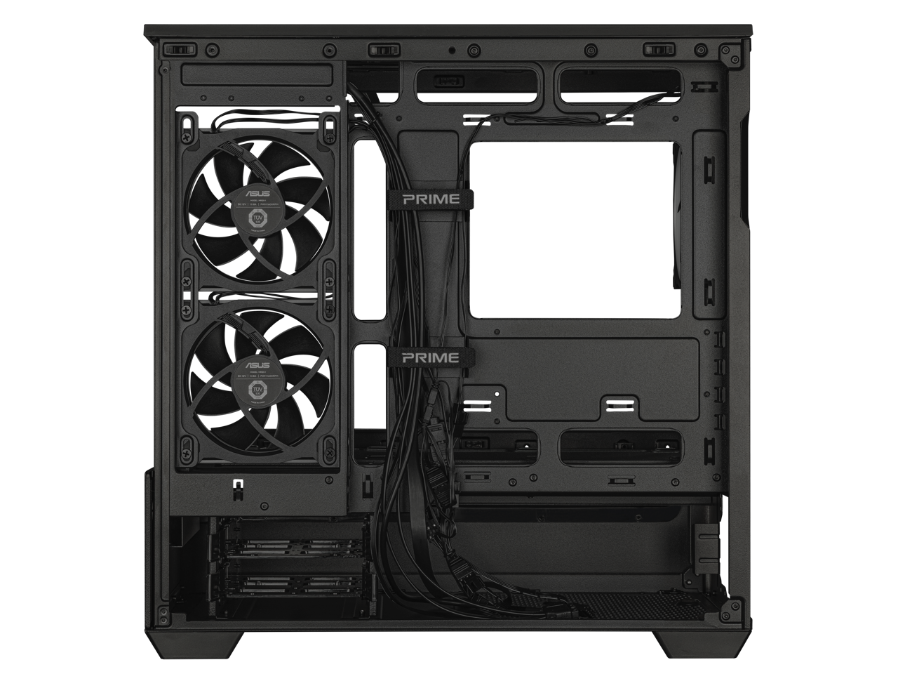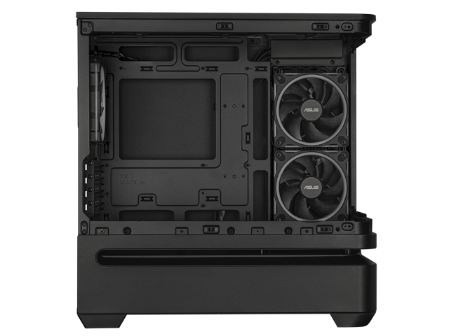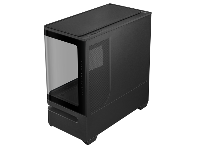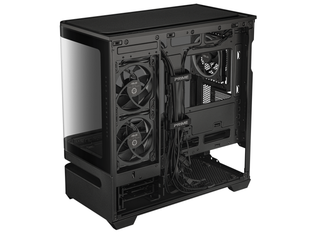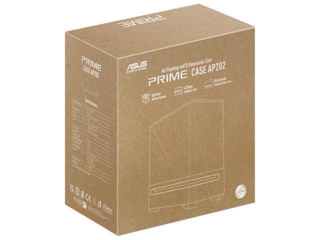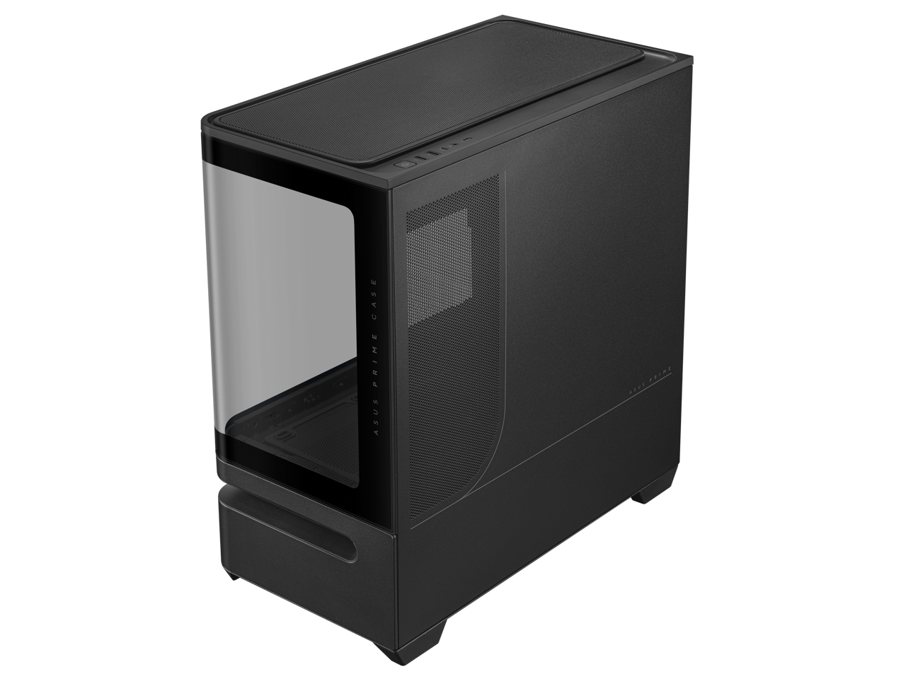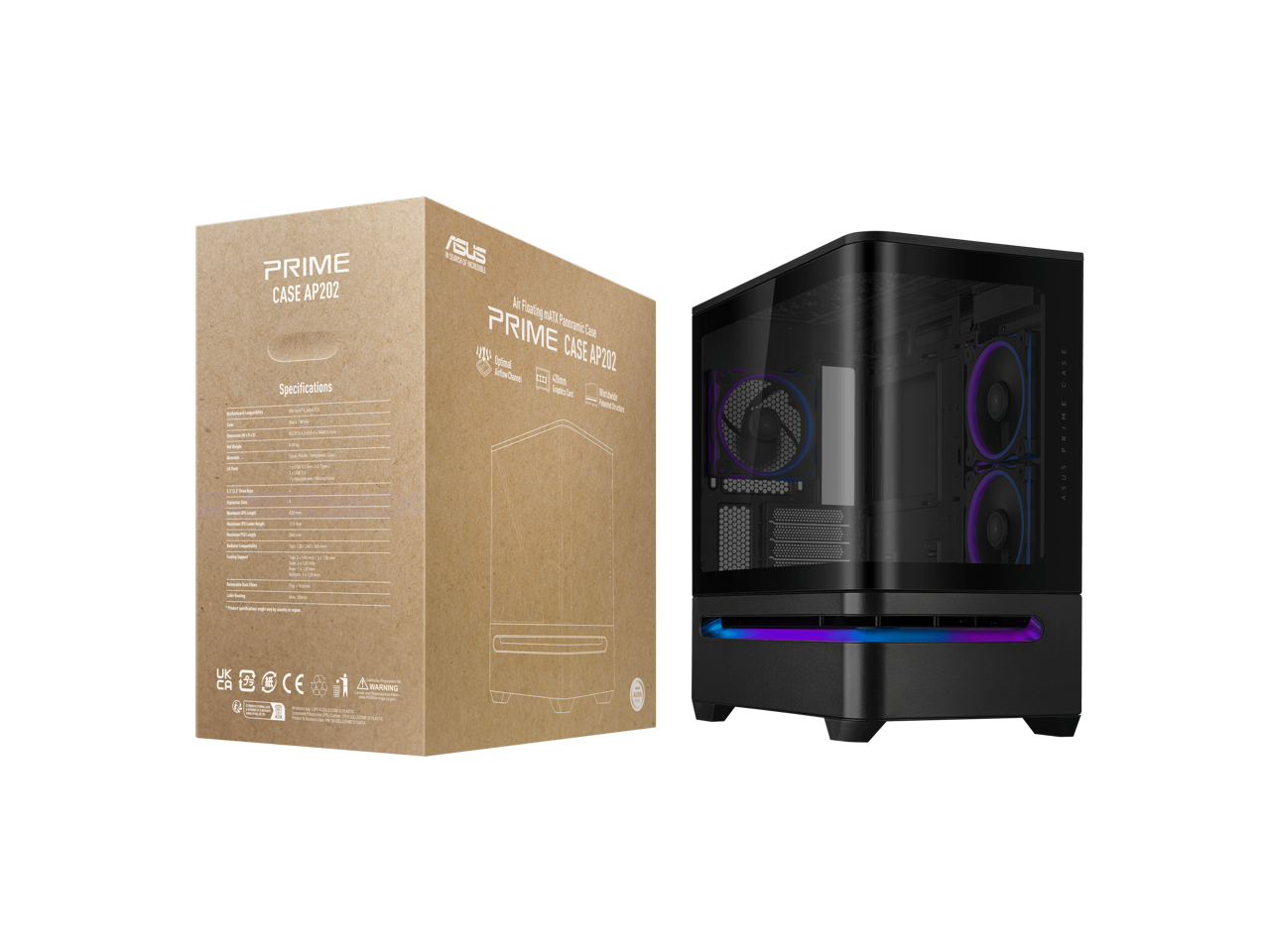 ASUS Prime AP202 ARGB Black mATX case with fully tempered curved glass, supports graphics cards up to 420mm long, 360mm long radiators, easy-detach rail, patented slot vent, built-in three ARGB fans