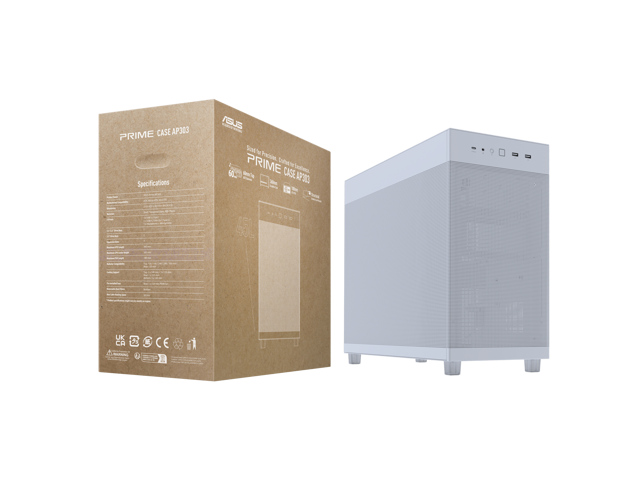 ASUS Prime AP303 White Edition Mesh-Panel 44-Liter ATX PC case, structural GPU bracket, 360mm radiator support, 180mm ATX PSU's, 20Gbps USB Type-C