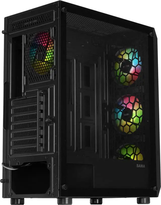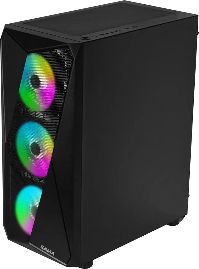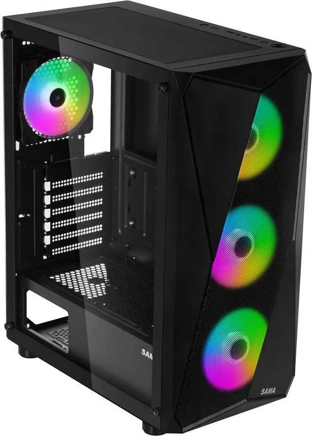 Sama 3313 Black USB3.0 Tempered Glass ATX Tower Gaming Computer Case w/ 4 x 120mm ARGB Fans (Pre-Installed)