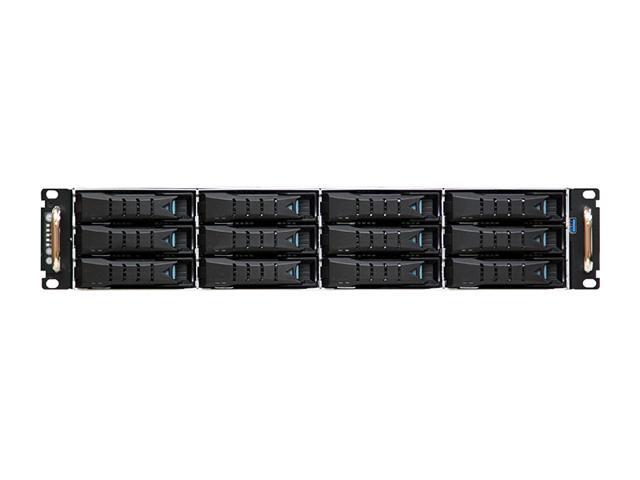 AIC RSC-2ET 2U 12-bay SAS/SATA storage server chassis. With its tool-less 3.5" and 2.5" hard drive carriers, top covers and backplane.