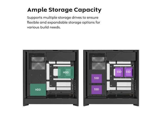 Out-of-Sight Cable Management: The relocated PSU placement supports Back-Connect motherboards, enabling a cleaner, more concealed cable management setup.