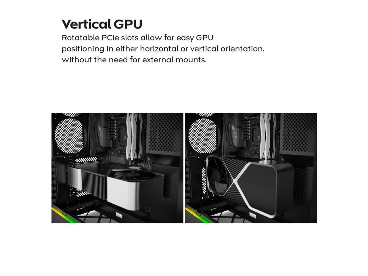 Vertical GPU Ready: Rotatable PCIe slots enable an instant vertical GPU setup without requiring an extra holder or stand.