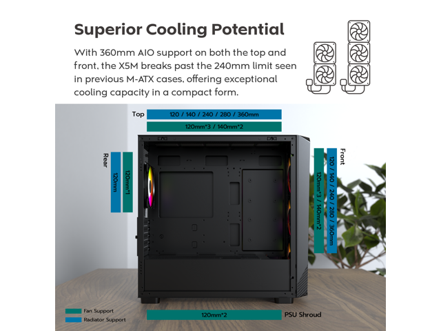- Pre-installed ARGB fans: Comes build-ready with three 120mm front ARGB fans and one 120mm rear ARGB fan, delivering vibrant lighting and efficient airflow out of the box.