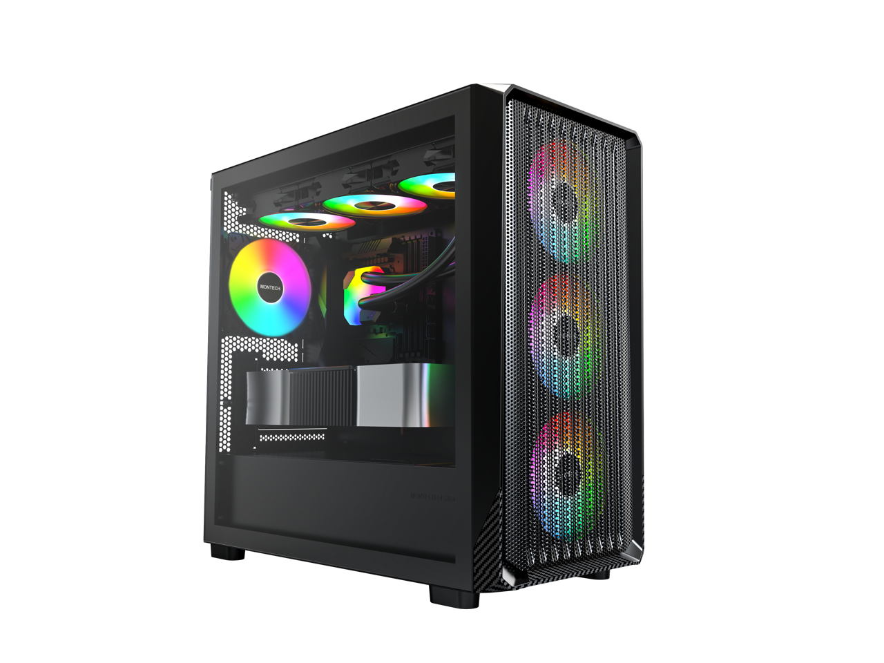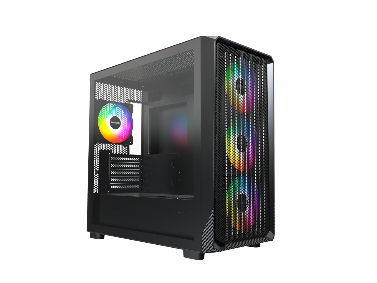 MONTECH X5M - Micro ATX Gaming PC Case, High Airflow, 4x120mm ARGB Fans Pre-installed, Glass Side Panel, Carbon Fiber Print Accents, Black