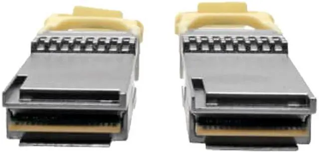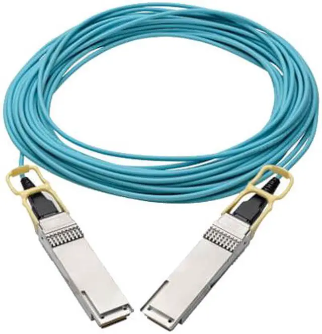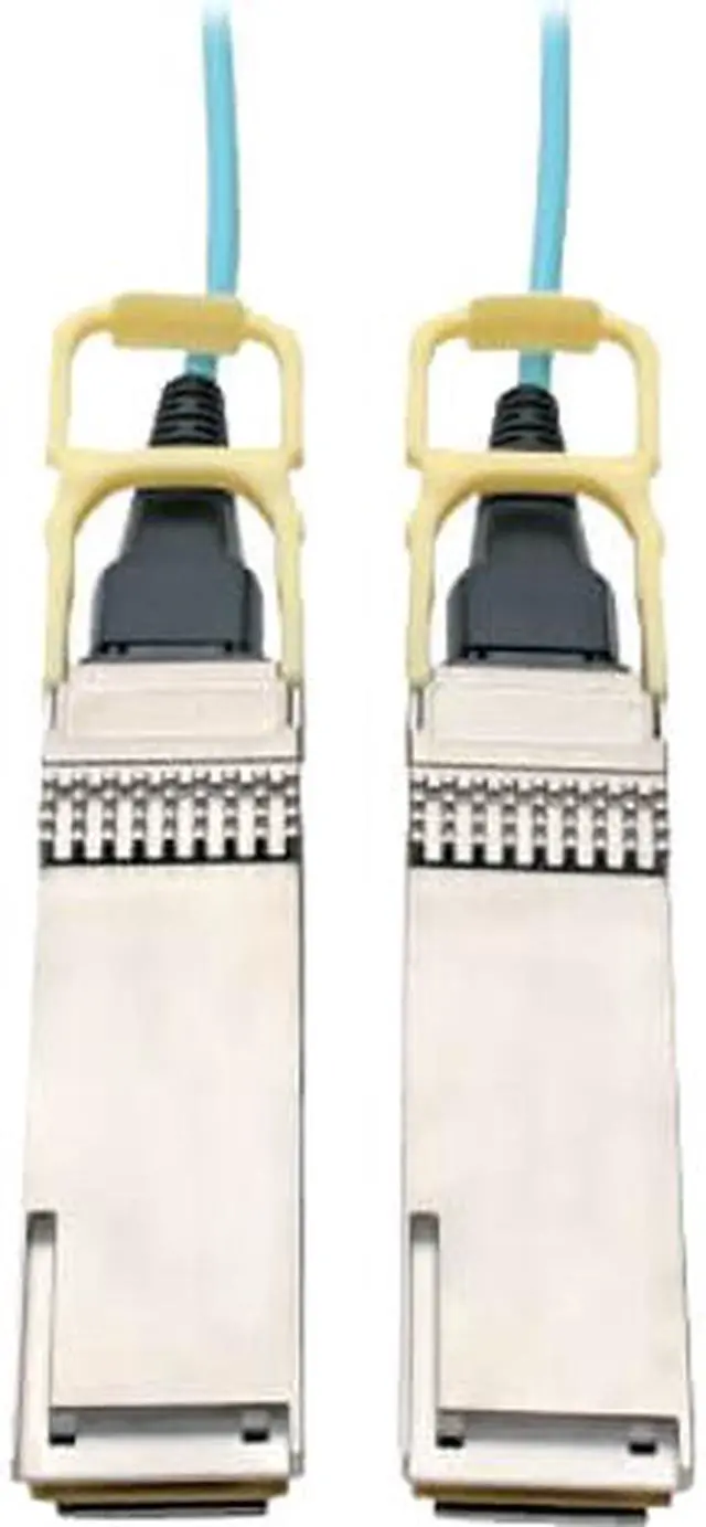 QSFP28 Cable Connects Network Equipment at Speeds up to 100 Gbps This 15-meter (49.2-foot) QSFP28 Active Optical Cable (AOC) provides next-generation performance by combining four full-duplex 25 Gbps SFP channels into one affordable high-density package. Each male connector contains four independent 850 nm VCSEL-based transmitters and four independent receivers using PIN photo detectors inside. Each lane supports data transfer speeds up to 25 Gbps. Together, the N28H-15M-AQ provides an aggregated speed up to 100 Gbps, making it ideal for switches, servers, routers and other high-end networking equipment. Push/Pull Tab Connectors Provide Quick, Easy Connections The hot-pluggable QSFP28 connectors include ergonomic push/pull tabs, which are easily accessible in high-density applications and make the cable easy to install and remove with just one hand.<...Cable Type: Fiber OpticFiber Optic Mode: Multi-modeCore/Cladding Diameter: 50/125 mCable Length: 49.21 ftConnector on First End: 1 x QSFP28 Male IEEE 802.3bm NetworkConnector on Second End: 1 x QSFP28 Male IEEE 802.3bm NetworkFeatures: ActiveFeatures: EMI ProtectionDevice Supported: SwitchDevice Supported: ServerDevice Supported: RouterDevice Supported: Network DeviceData Transfer Rate: 12.50 GB/sColor: AquaEnvironmentally Friendly: YesEnvironmental Certification: RoHSLimited Warranty: 1 Year