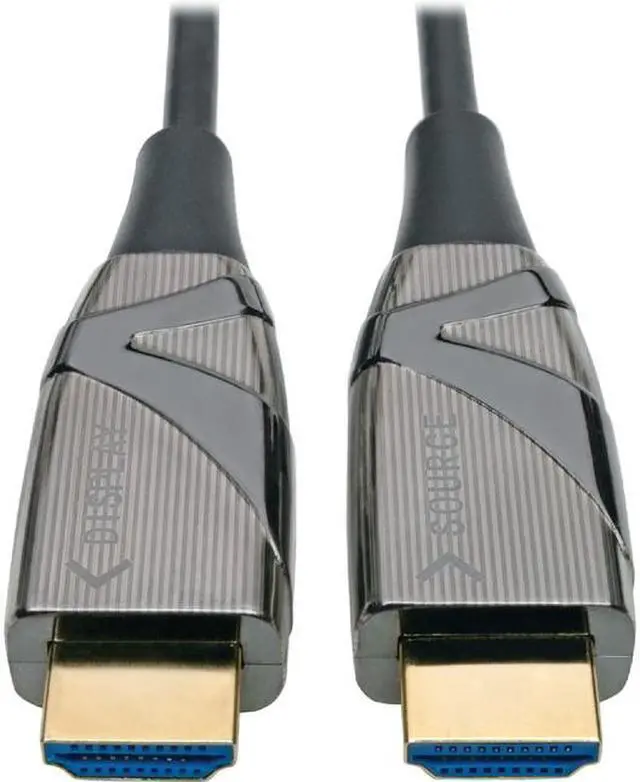 Because the fiber cable is slimmer and more flexible than standard copper HDMI cables, the P568-40M-FBR is easier to install around corners and in hard-to-reach spaces behind equipment. It draws power from the connected device, so no external power supply is needed to transmit the HDMI signal across the longer distances unique to fiber optic cabling. Note: the cable must be installed in the correct direction to function properly, so please check the Source and Display labels on the connectors before installation.