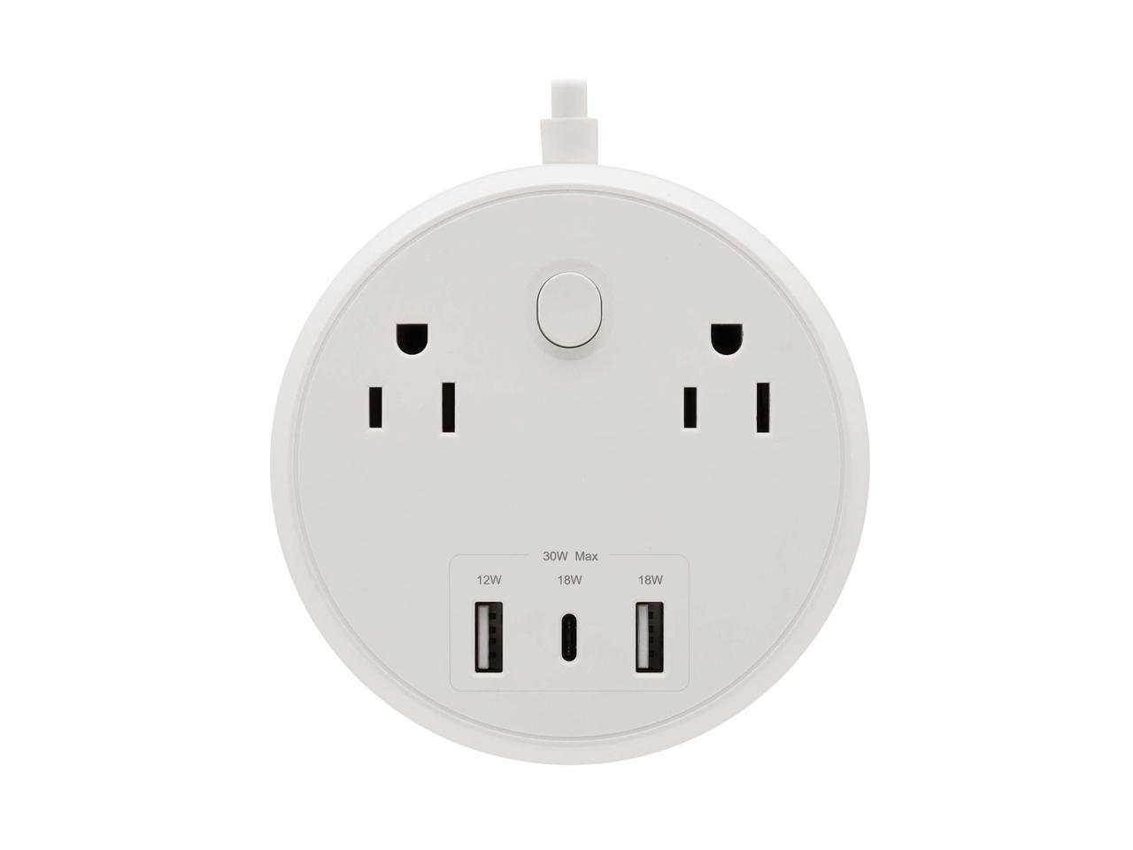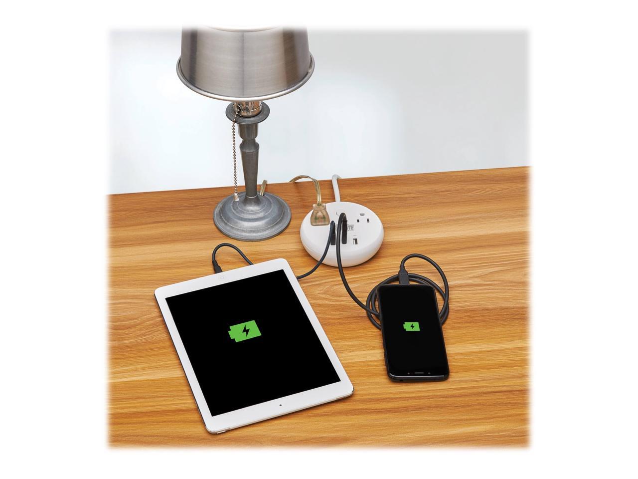Eaton Tripp Lite Series Safe-IT 30W 2-Outlet Surge Protector 5-15R Outlets, 3 USB Ports, 6 ft. 1.8 m Cord, 300 Joules, Antimicrobial Protection, White