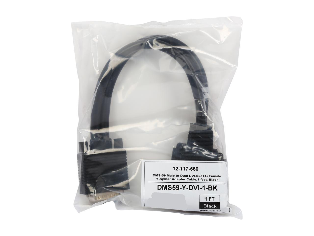 Coboc DMS59-Y-DVI-1-BK 1ft Black Color LFH/DMS-59 Male to Dual DVI-I(24+1) Female Splitter Y Cable
