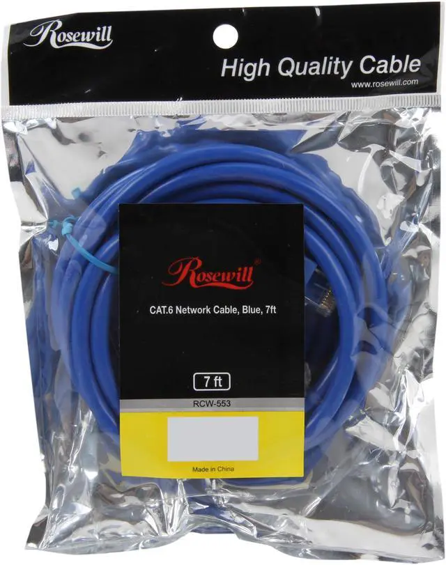 The Rosewill Cat 6 Network Cable offers a reliable Ethernet connection. It is designed to handle high bandwidth intensive applications, and drastically reduces both impedance and structural return loss (SRL), as compared to standard 100MHz, wire to ensure error-free transmission. The durable blue jacket easily color-codes your cable runs while providing rugged flexibility for your network connection. To ensure long lasting performance, the cable features strain relief to prevent the RJ45 from bending at sharp angles, and a snag-less design to protector the RJ45 clip from damage during installation.
