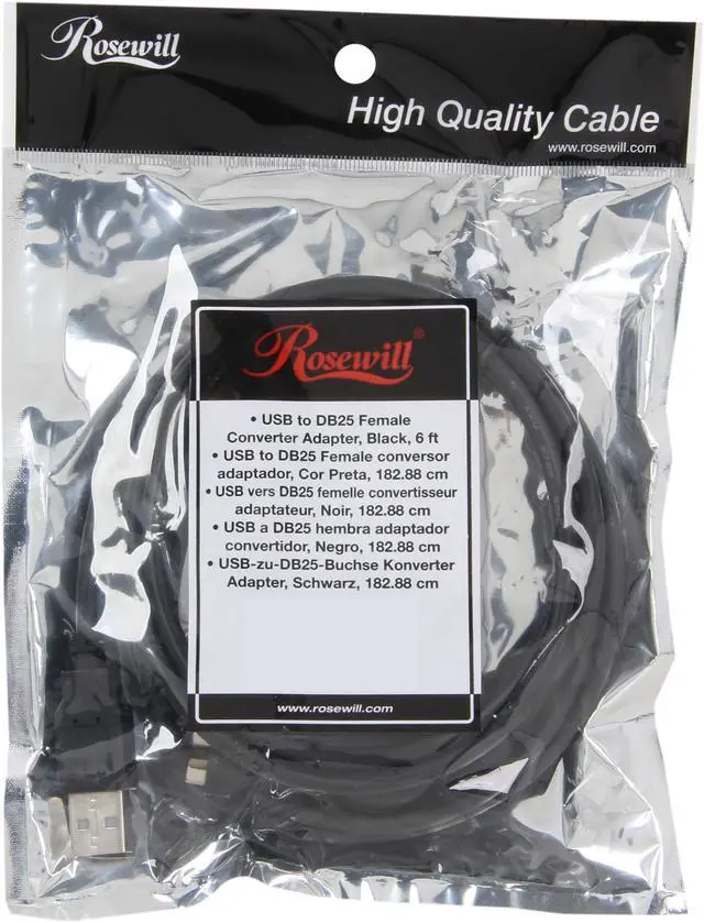 Want to move your printer across the room? Rosewill 6' RCW-615 USB to DB25 Female Parallel Converter Adapter Cable is the one for you. The Rosewill RCW-615 cable is compliant with USB 2.0 to deliver transfer rates of up to 480Mbps. The Rosewill RCW-615 cable provides play-and-play connections to keyboards, mice, printers, digital cameras and other USB peripherals.