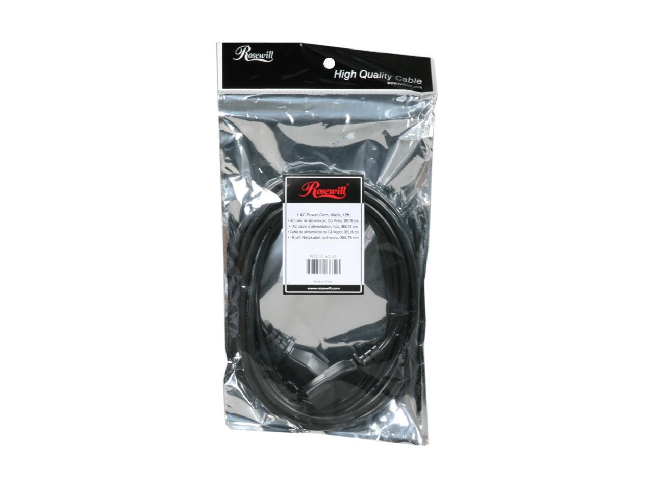 Rosewill RCA-12-AC-US - 12-Foot Universal AC Power Supply Cord - 3-Prong, Male to Female, Black