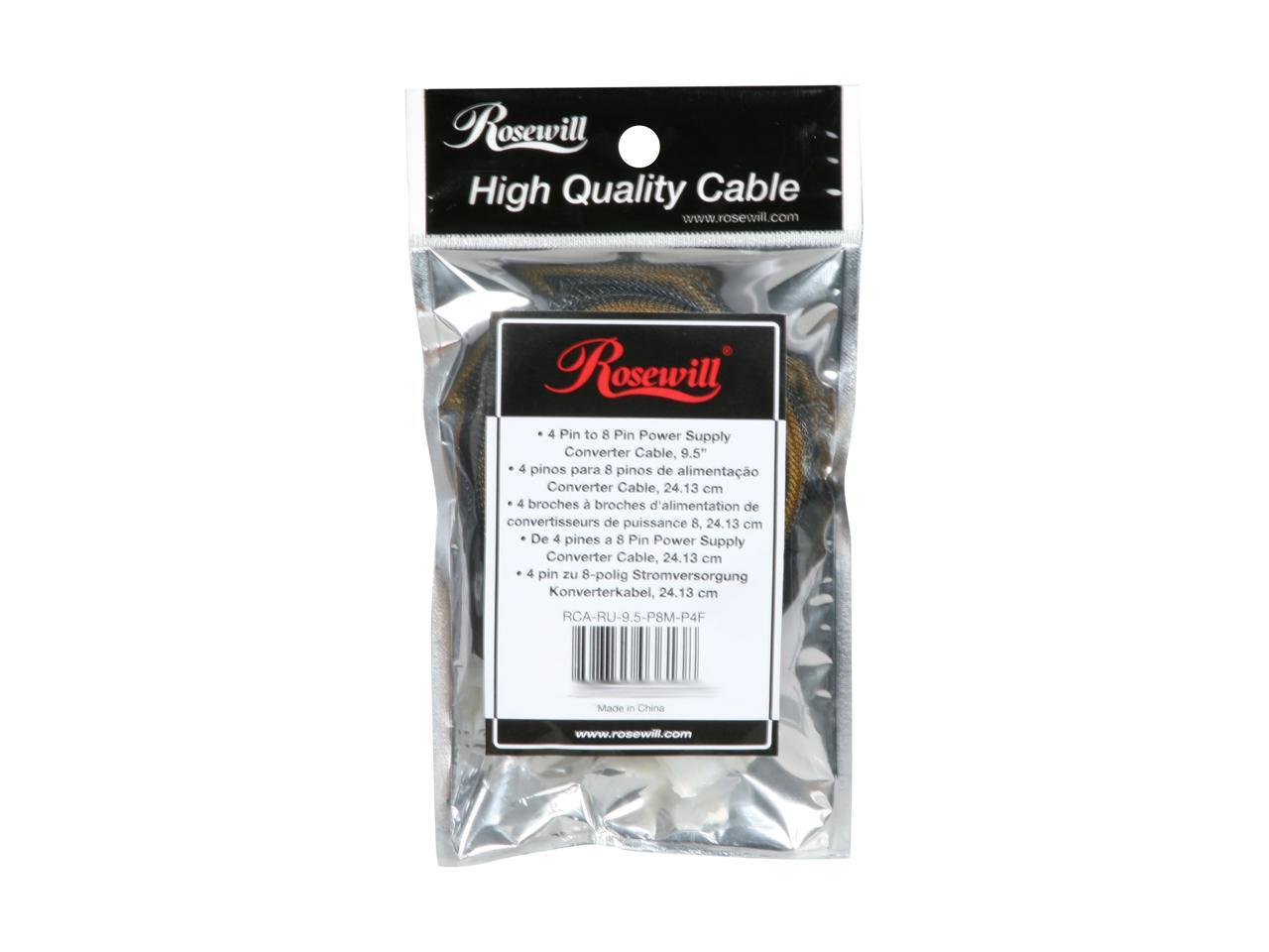 Rosewill 9.5" EPS 8-Pin Male to ATX 4-Pin Female Cable with Cable Sleeve Model RCA-RU9.5-P8M-P4F