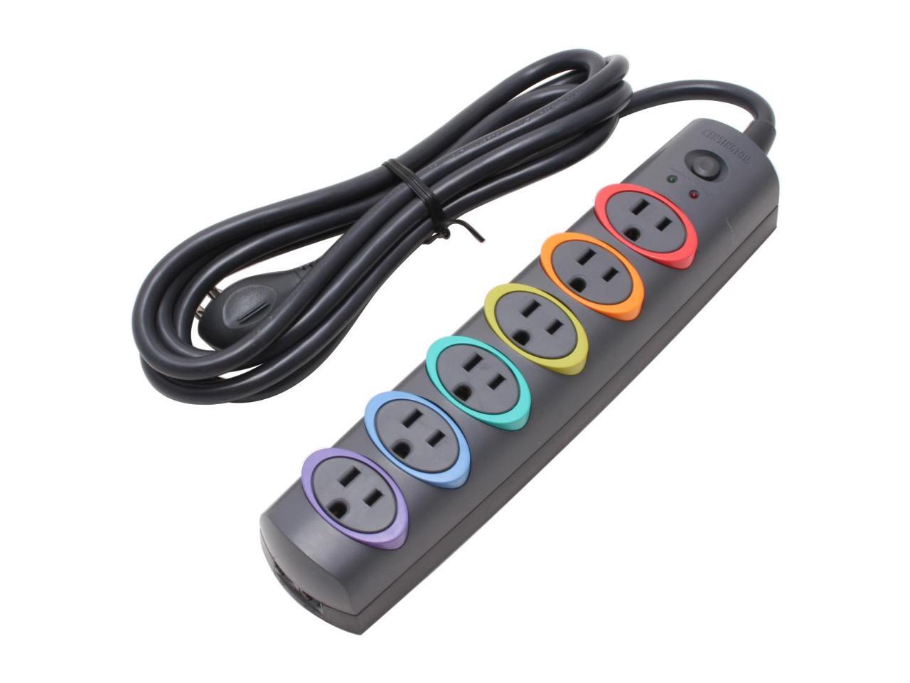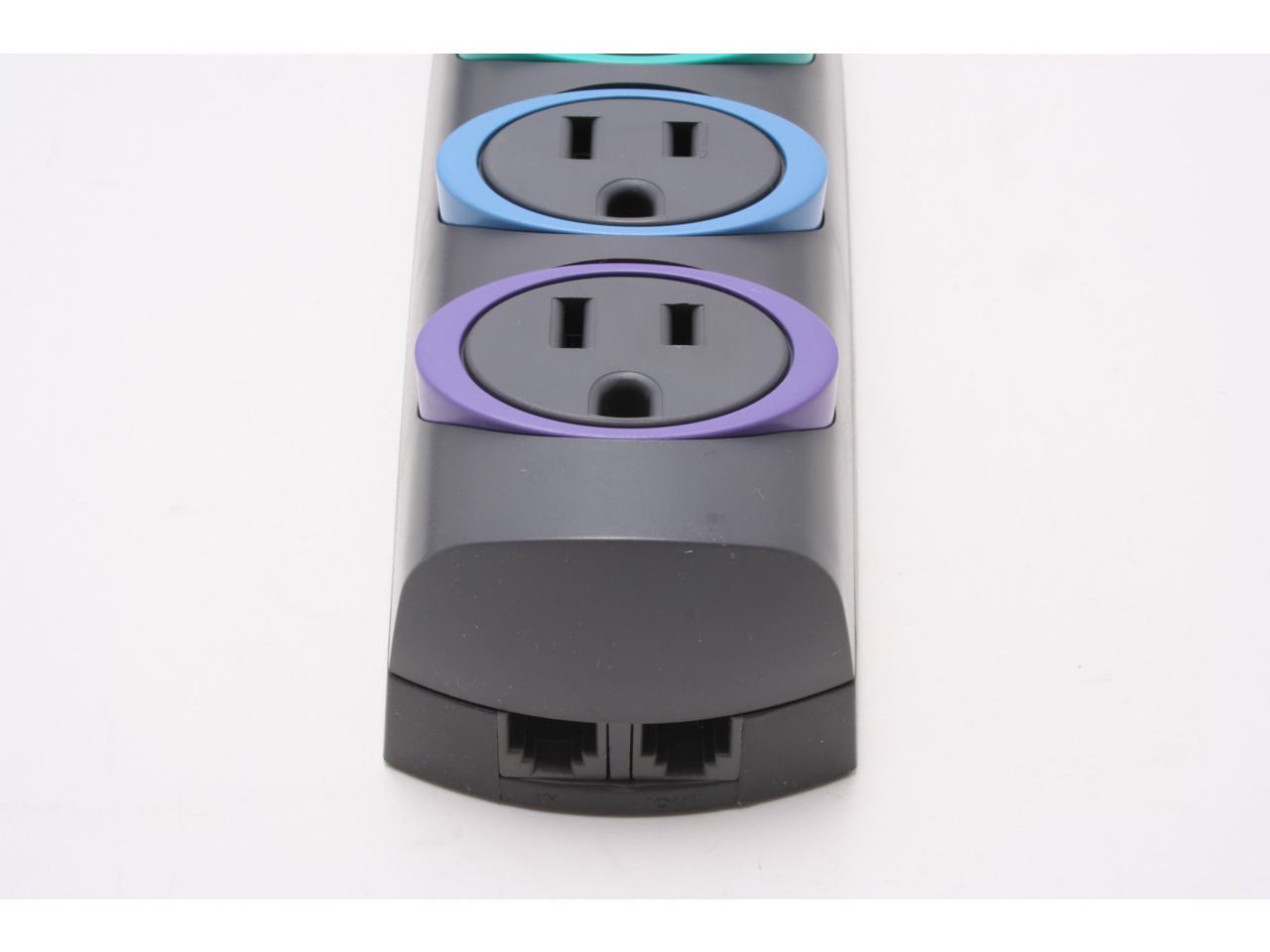 Black housing with multi-color outlets.