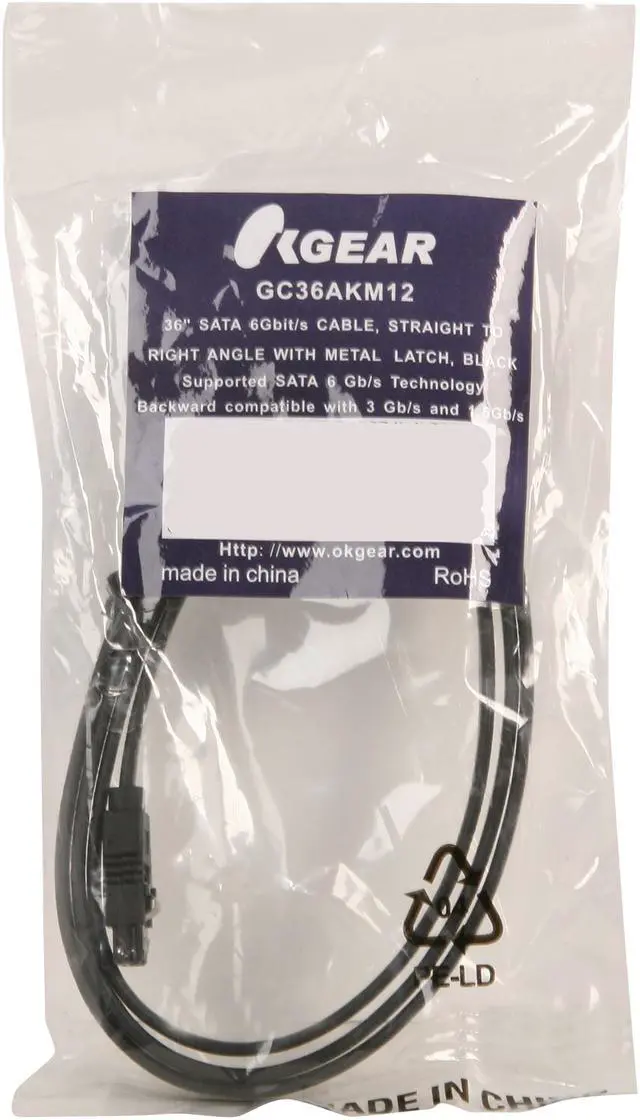 Built for fast transfer speeds, the Okgear GC36AKM12 36in. SATA 6Gbps cable is a high-quality and easy-to-use data cable. The metal latch included ensures that the Okgear SATA cable will not wiggle free over time, while the rubber body allows you to twist and tug the cable without risk of damage—made with wear and tear in mind.