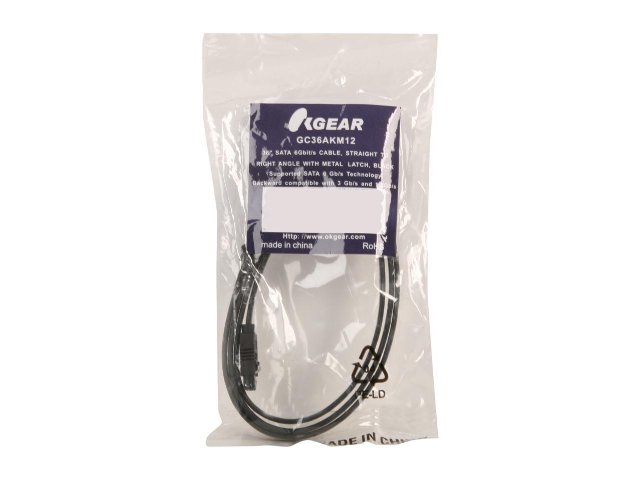 OKGEAR 36" SATA 6Gbps Cable, Straight to Right Angle with Metal Latch, Black, Backward Compatible with 3 Gbps and 1.5 Gbps
