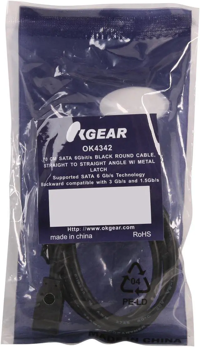 | Features | Designed to connect from SATA port( L type) to SATA port( L type) Cable for external and internal use Safe data transfer Support speed up to 6 Gb/s EMI protection Flexible cable RoHS compliant SATA connector is straight to straight |