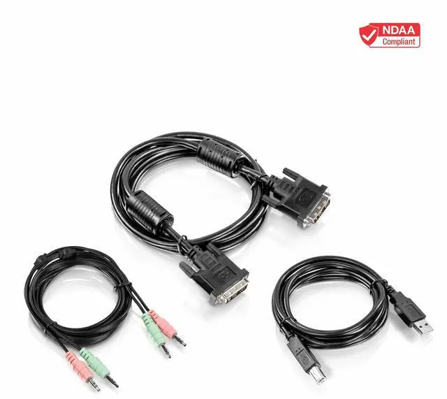 "• Compatible with the TK-232DV, TK-222DVK, TK-422DVK KVM Switch • DVI-I cable interface • USB cable for mouse and keyboard connections • 3.5mm cables for microphone and speaker connections • 2 Year TRENDnet Manufacturer’s Warranty "