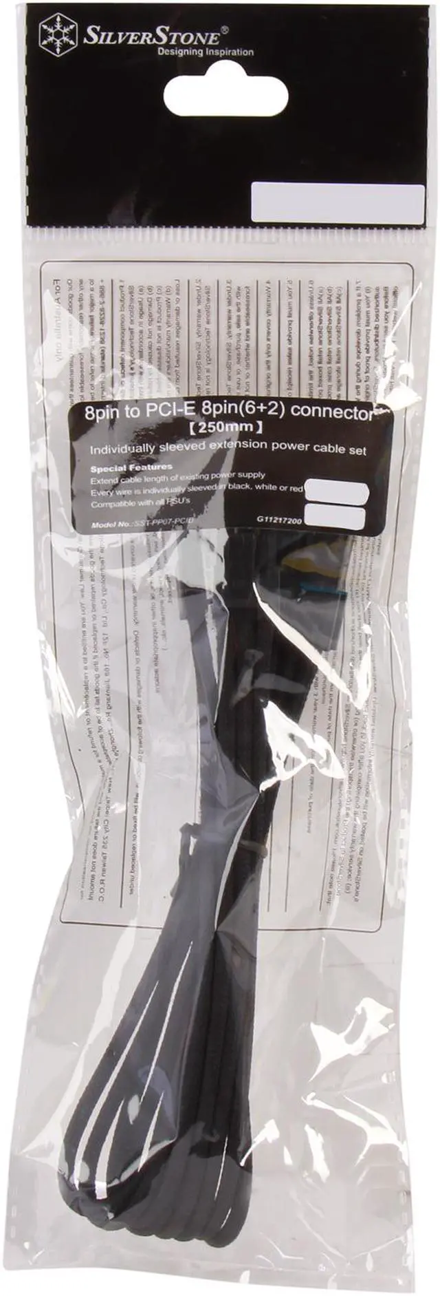 Silverstone PP07-PCIB Sleeved Extension Power Supply Cable, 1 x 8pin to PCI-E 8pin(6+2) Connector