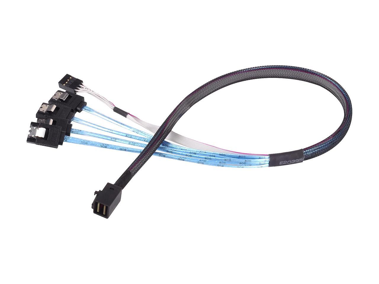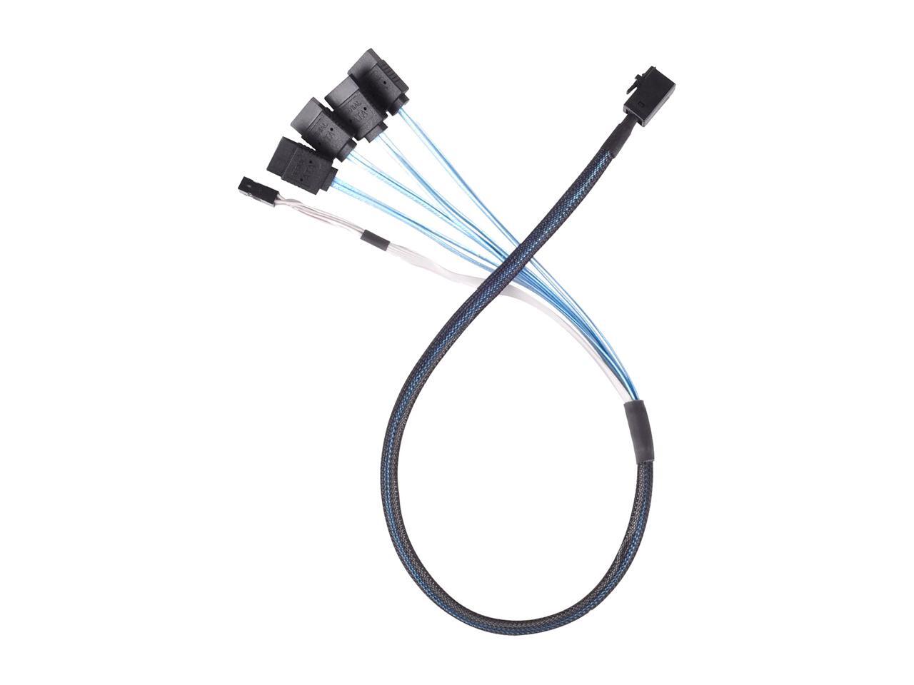 - Thick, shielded Mini-SAS SFF-8643 36-Pin (target) to SATA 7-pin (host) with sideband for reliable throughput
