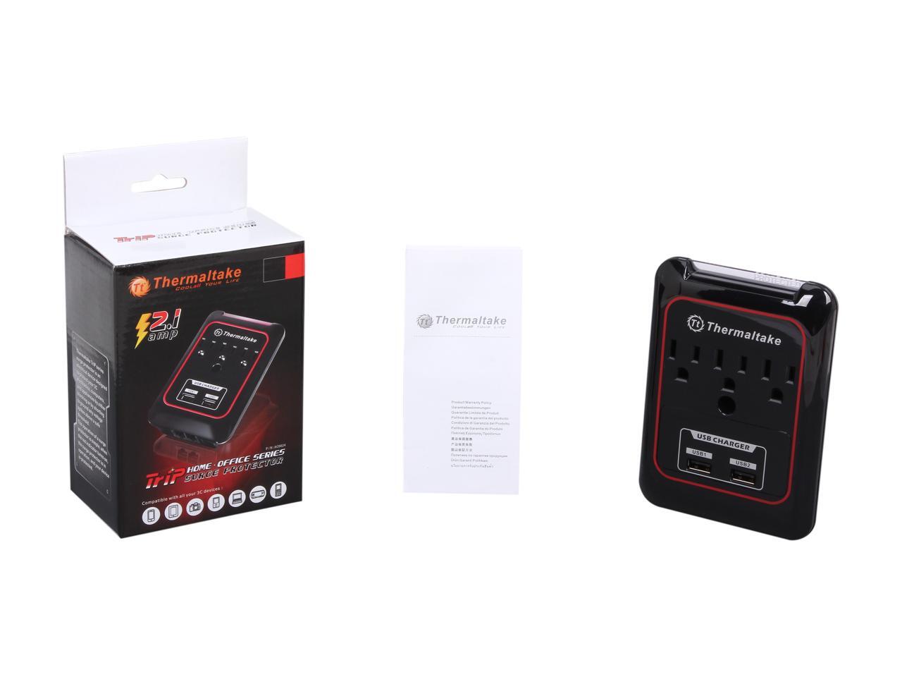 Thermaltake AC0024 TriP Surge Protector 3 Outlets with dual USB ports 2.1A output for Tablets, Smartphones, and more