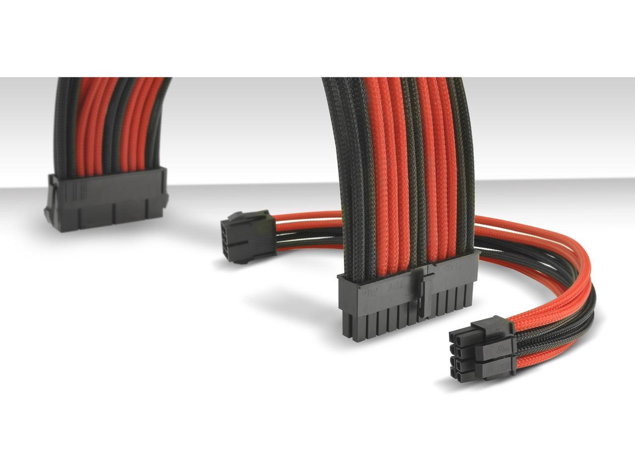 Thermaltake AC-033-CN1NAN-A1 11.81 in. (All Cables) TtMod Sleeve Extension Power Supply Cable Kit ATX/EPS/8-pin PCI-E/6-pin PCI-E with Combs Red/Black